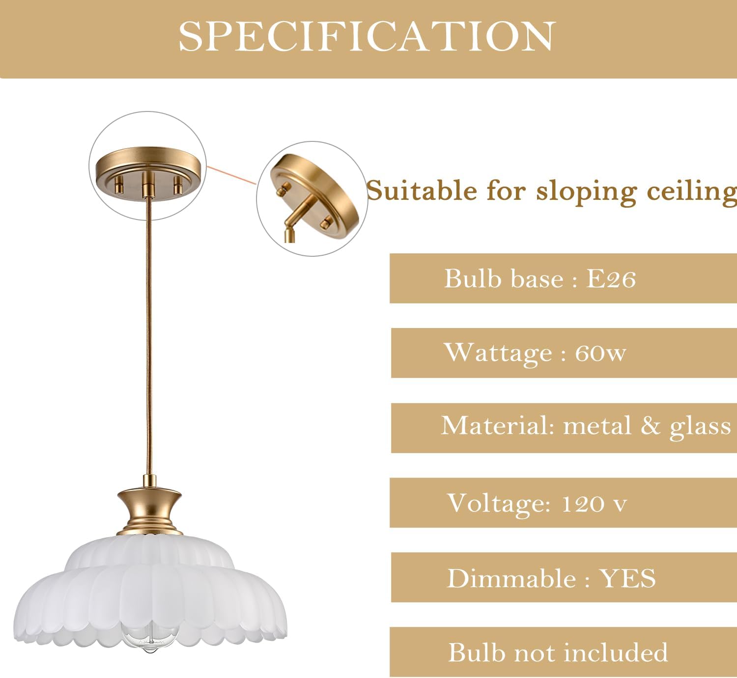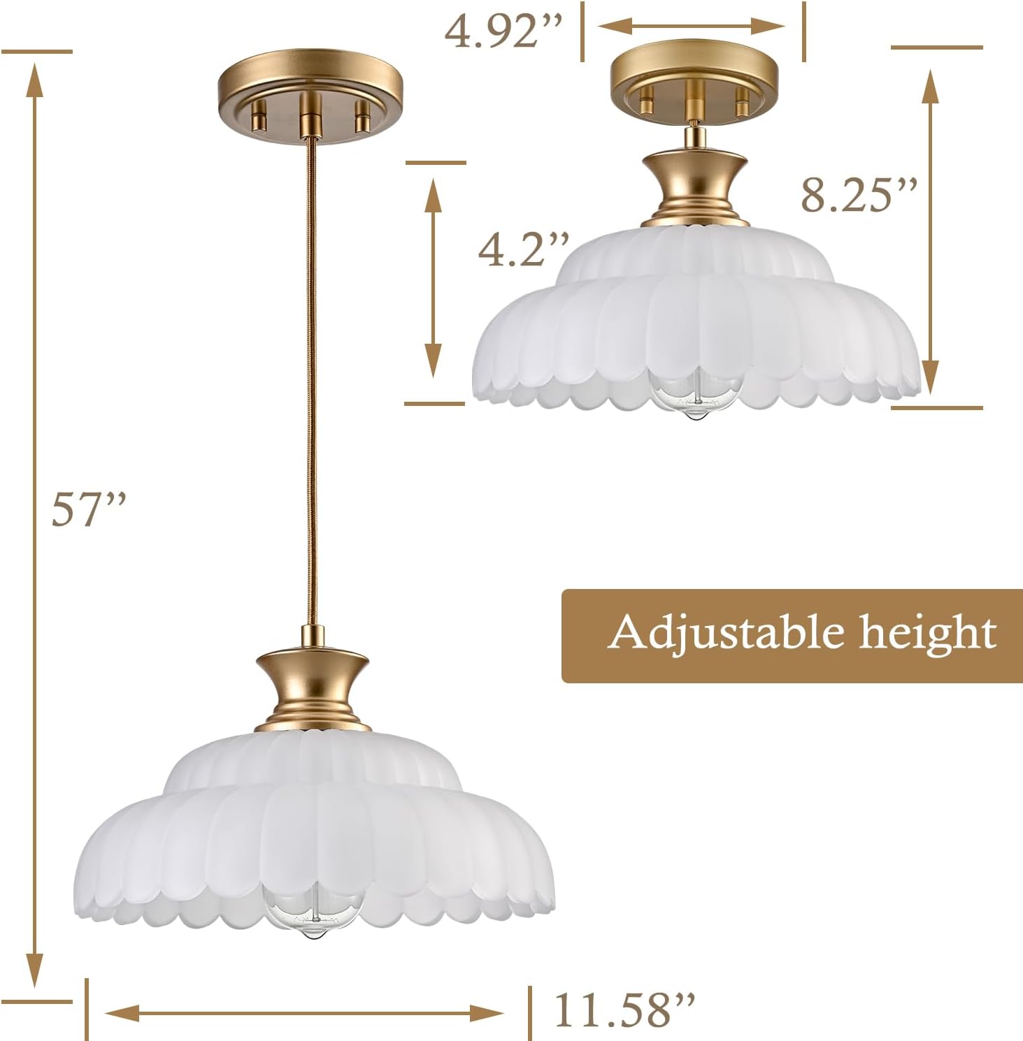 Vintage Elegant Floral Design: This exquisite floral-shaped gold pendant light is adorned with a frosted glass shade that exudes sophistication and grace. Its timeless yet contemporary design seamlessly blends with a variety of interior styles, making it a versatile addition to both modern and traditional spaces.