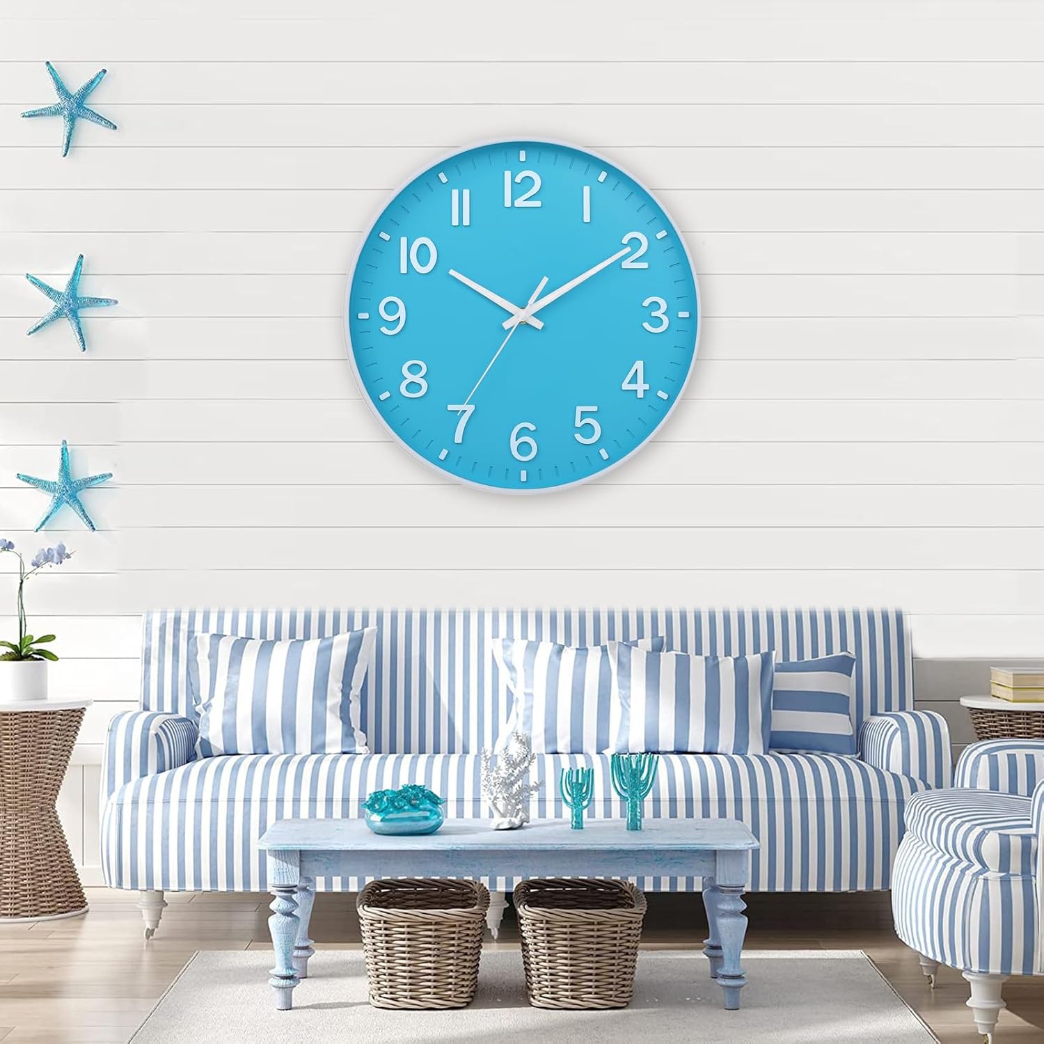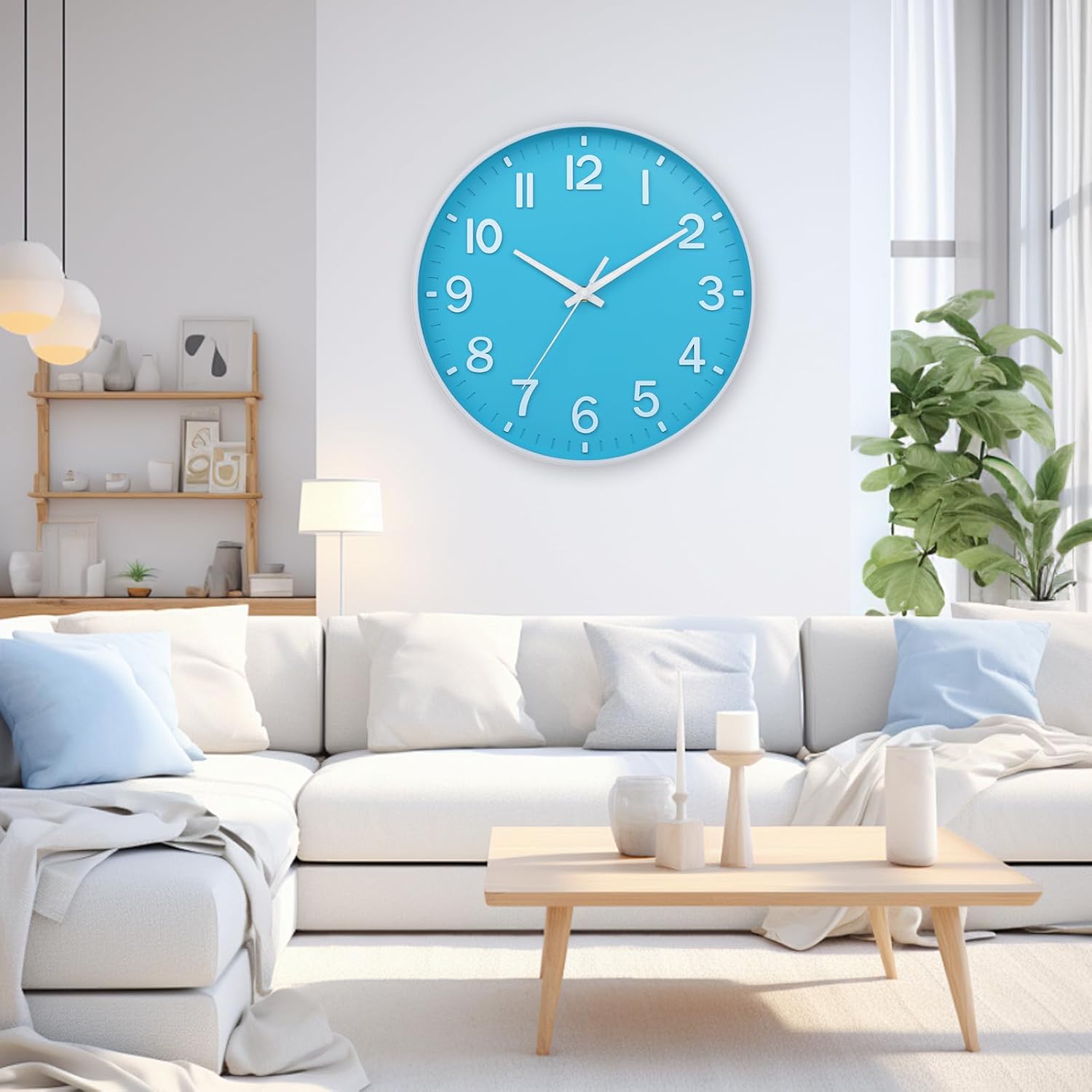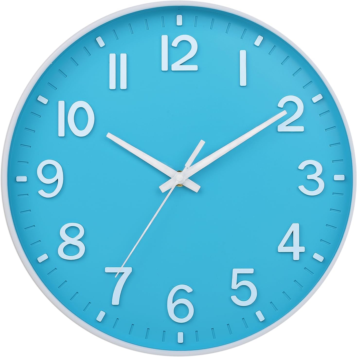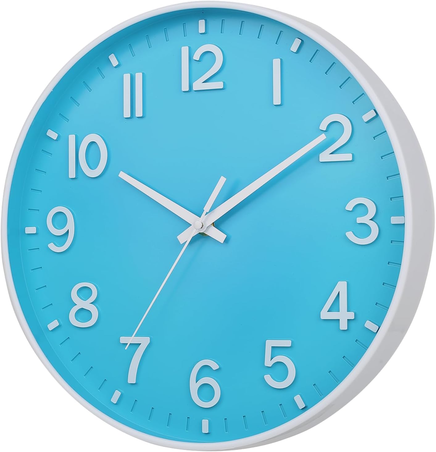 HZDHCLH Wall Clock 3D Numbers Wall ClockBattery-Powered 12-inch Silent Non-Tick Modern Wall Clock for Living Room, Bedroom, Kitchen, and Office Decoration (Blue and White)