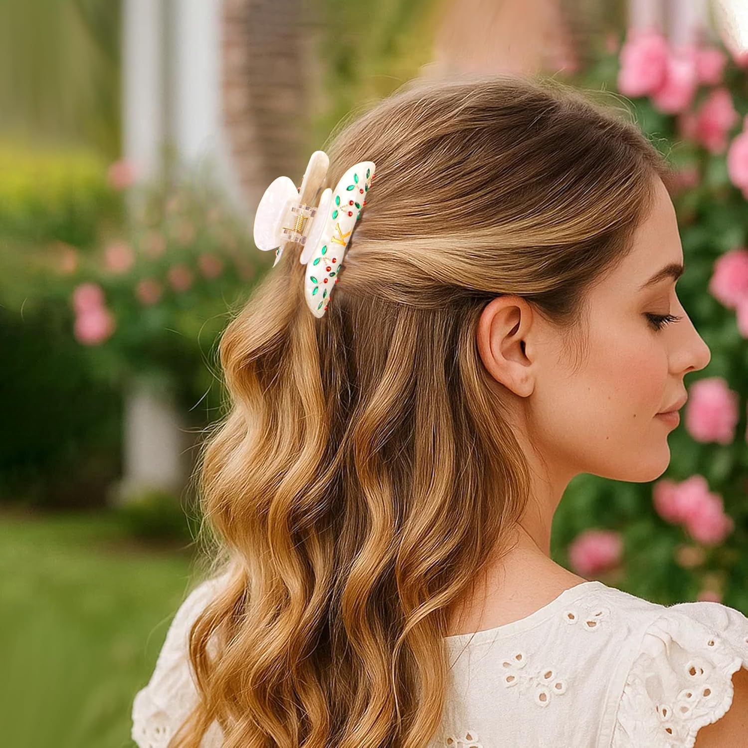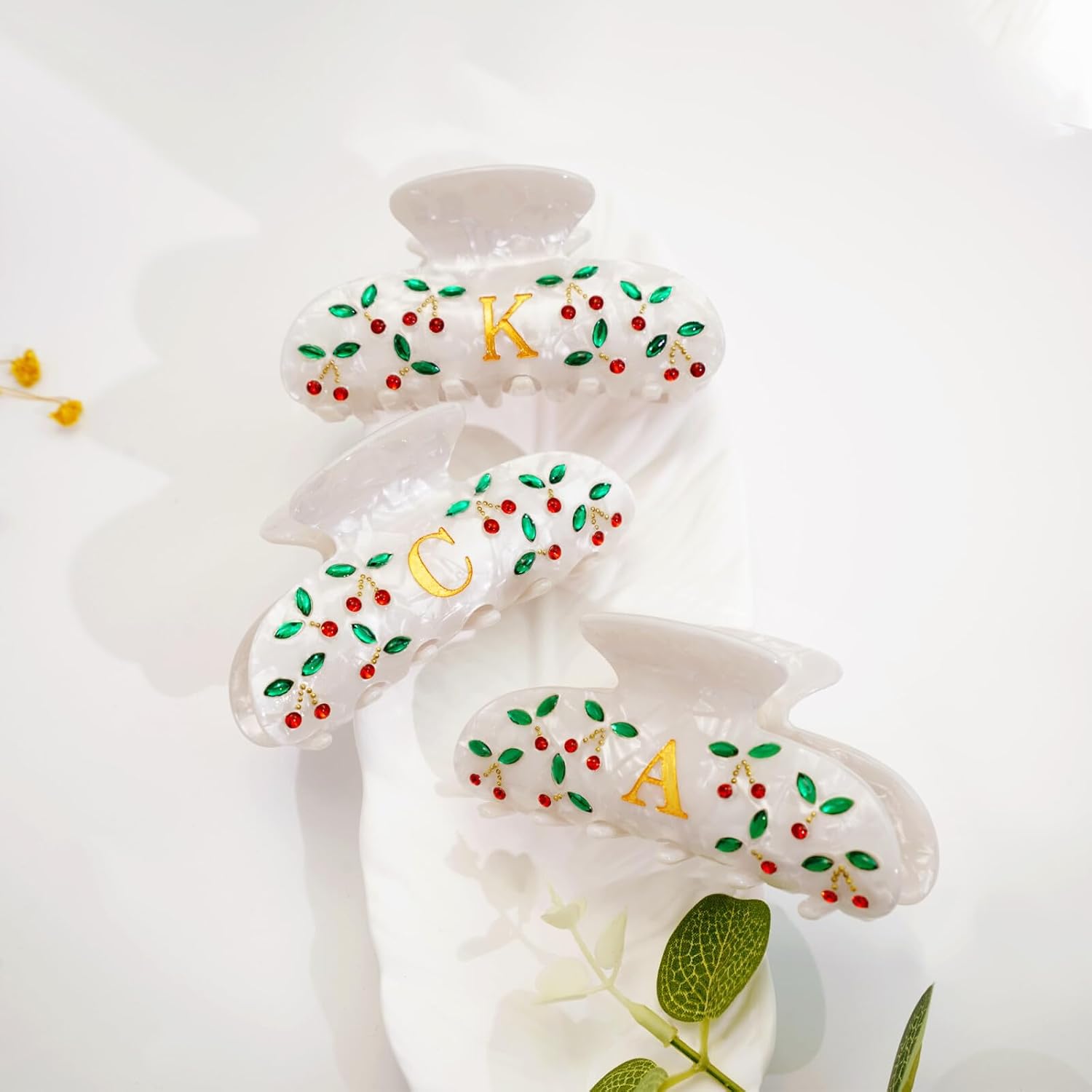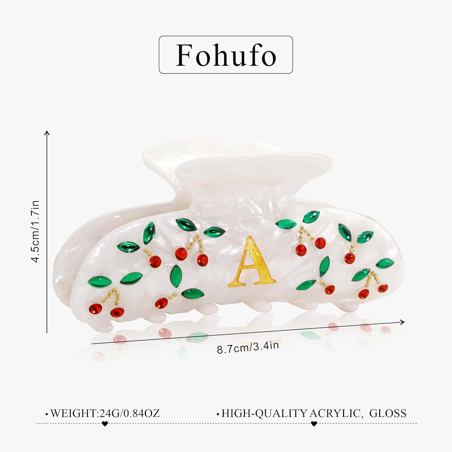 Red Cherry and Elegant Monogram Design: Our hair clips claws feature a gorgeous red cherry rhinestone pattern with a unique letter design, It will become your unique fashion accessories.