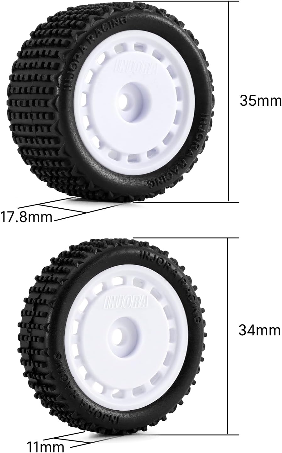 INJORA Pre-Mounted Pin Buggy Tires & Wheels for 1/24 Losi Micro-B, 4pcs(White)