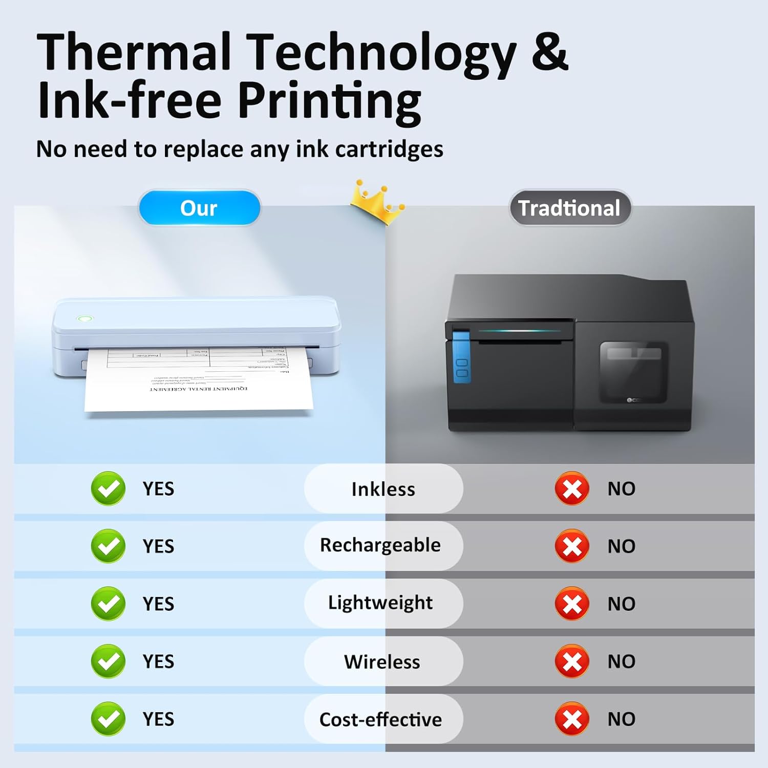 Inkless Portable Printer for Travel, Wireless Thermal Printer Supports 8.5″ x 11″ US Letter Size, Bluetooth Machine Includes Carry Case and 3 Rolls of Thermal Paper Kit, Blue