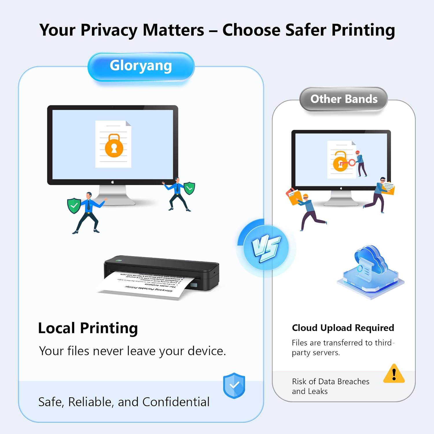 Ultra-Portable Design – Weighing just 1.75lb and measuring 1.7in thick, the Gloryang portable printer is incredibly lightweight and compact. Perfect for on-the-go printing during travels, work, or university, it easily fits into backpacks or briefcases. Ideal for emergency scenarios, contracts, office documents, and more.print. Portable Printing Anywhere.