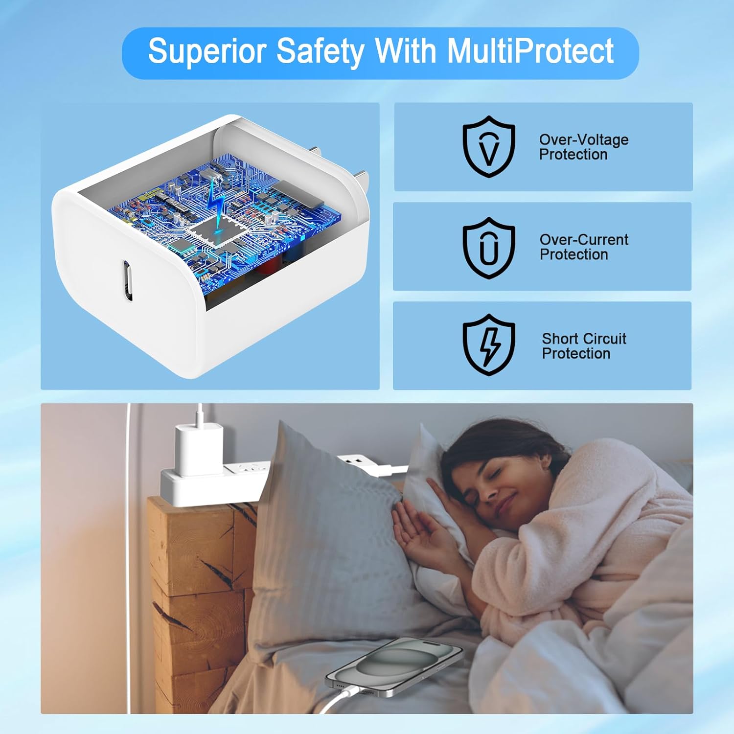 iPhone 17 16 15 Charger, USB C Charger, 4-Pack Fast Wall Charging, USB-C Chargers Block (4-Pack 6 ft Cable Included) for iPhone 17/16/15/15 Pro/15 Pro Max/iPad Pro/AirPods Samsung & More