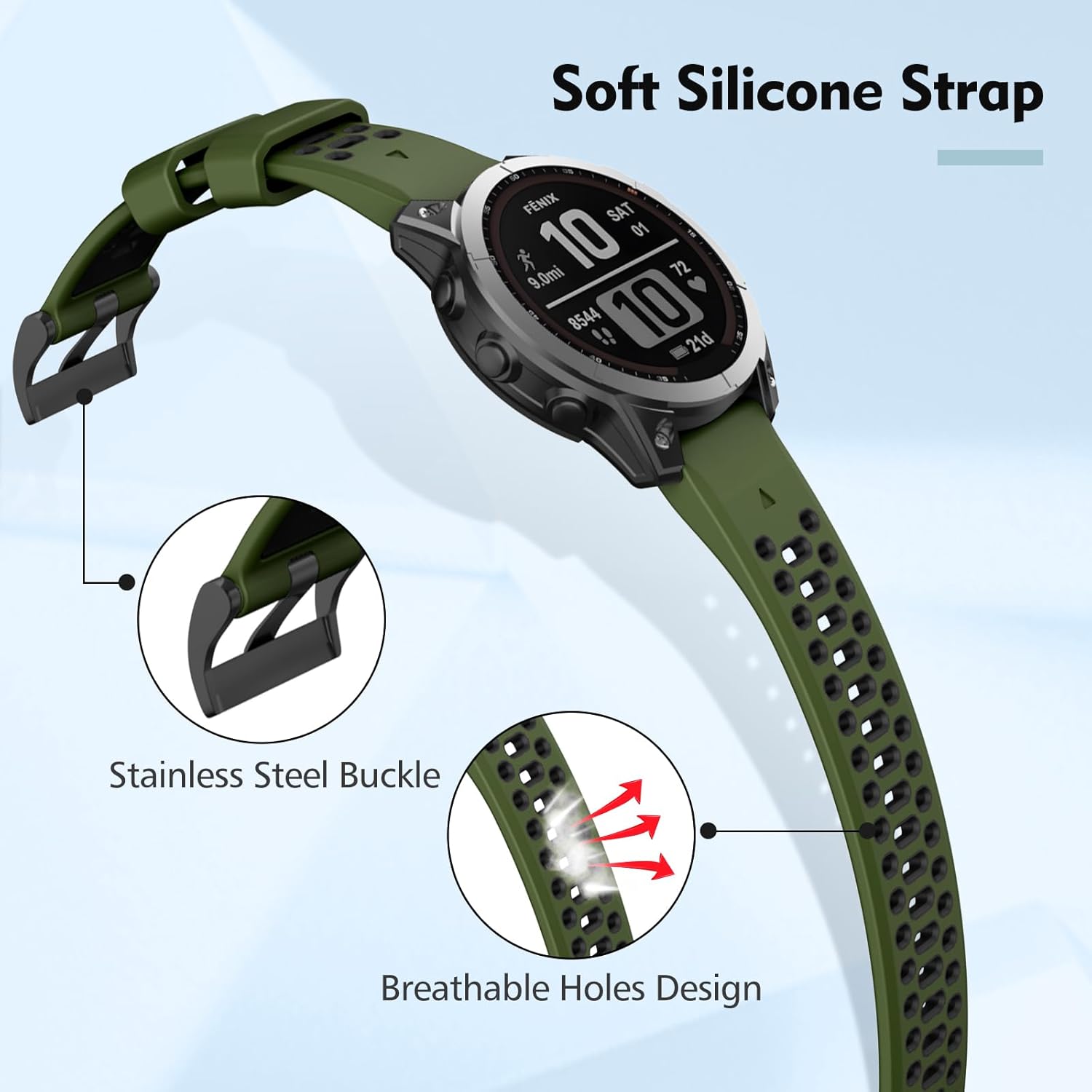 ISABAKE Compatible with Fenix 6 Band 22MM Easy-fit Soft Silicone Watch Bands Replacement for Fenix 7/Fenix 6 Pro/Fenix 5/Fenix 5 Plus/Approach S60/S62/Quatix 6 Smartwatches