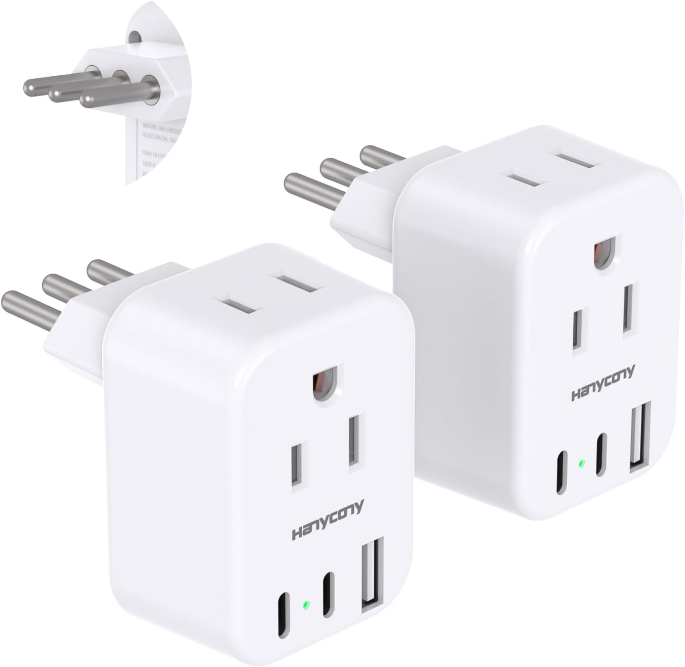 Italy Travel Plug Adapter, HANYCONY Type L Power Plug Adapter with 2 Outlets 3 USB Ports(2 USB C) for US USA to Italy Rome Uruguay Chile Travel Essentials