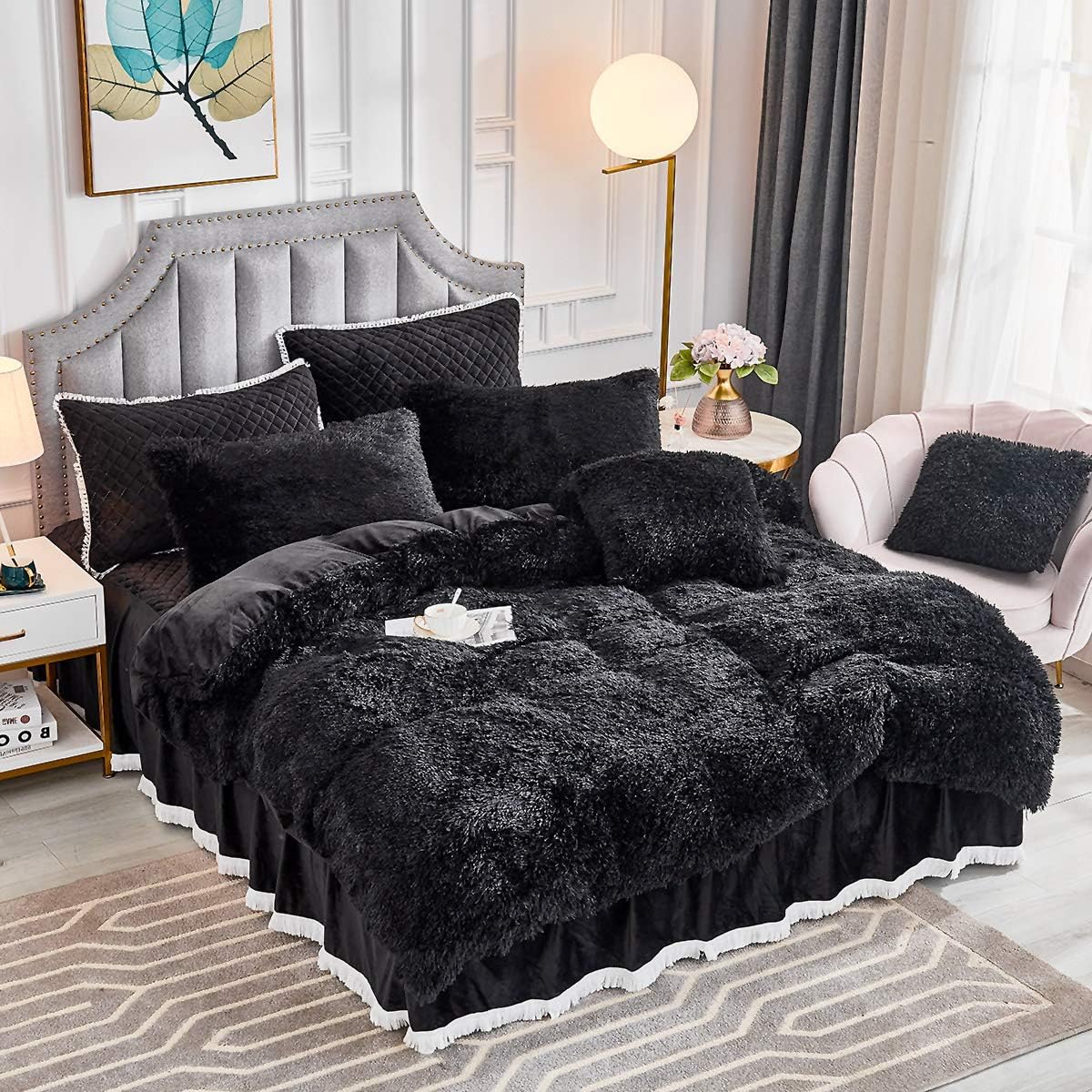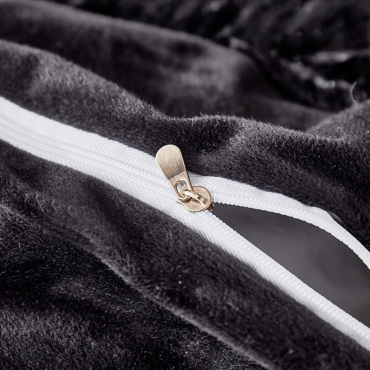 PRODUCT FEATURES: Ridiculously delightful 100-percent polyester microfiber faux fur shaggy, with a velvety soft under layer, silky soft on both sides. The unique gorgeous fluffy design can elevate your bedrooms/guest rooms to super luxe status, give everything a finished, posh look. Hidden zipper closure for duvet cover and pillowcases. Ties in the corners of the duvet cover to help keep the duvet in place.