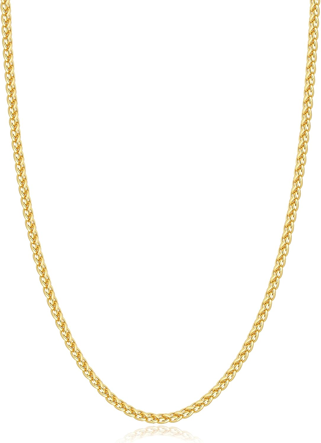 Jewlpire Italian Silver Wheat Chain/14k Gold Chain Necklace for Men, 2.5mm 3mm Chains for Men, Stainless Steel Necklace Chains for Men and Women, Mens Chain Necklace 16 18 20 22 24 26 Inch