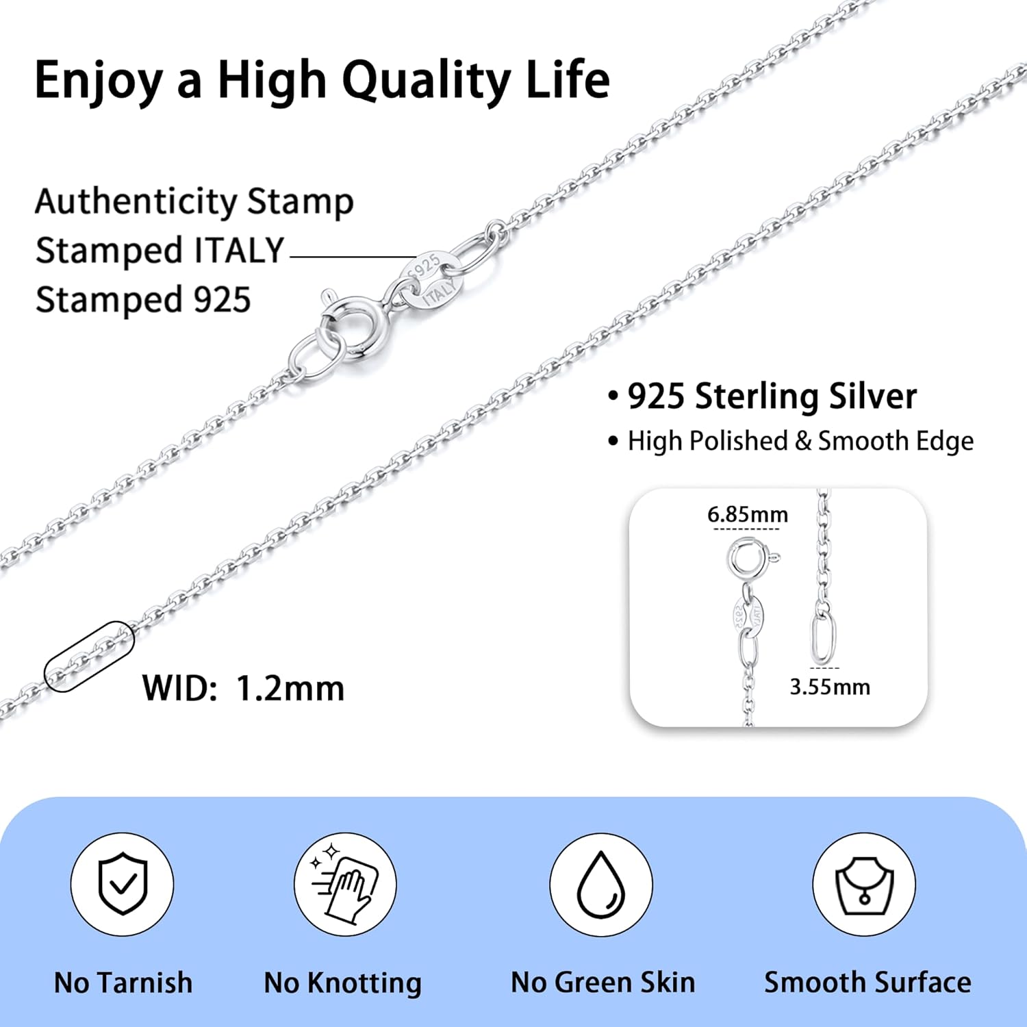 Jewlpire Solid 18k Gold Over 925 Sterling Silver Chain Necklace for Women, 1.2mm Cable Chain Necklace Super Sturdy & Shiny Women’s Chain Necklaces 14/16/17/18/20/22/24 Inches