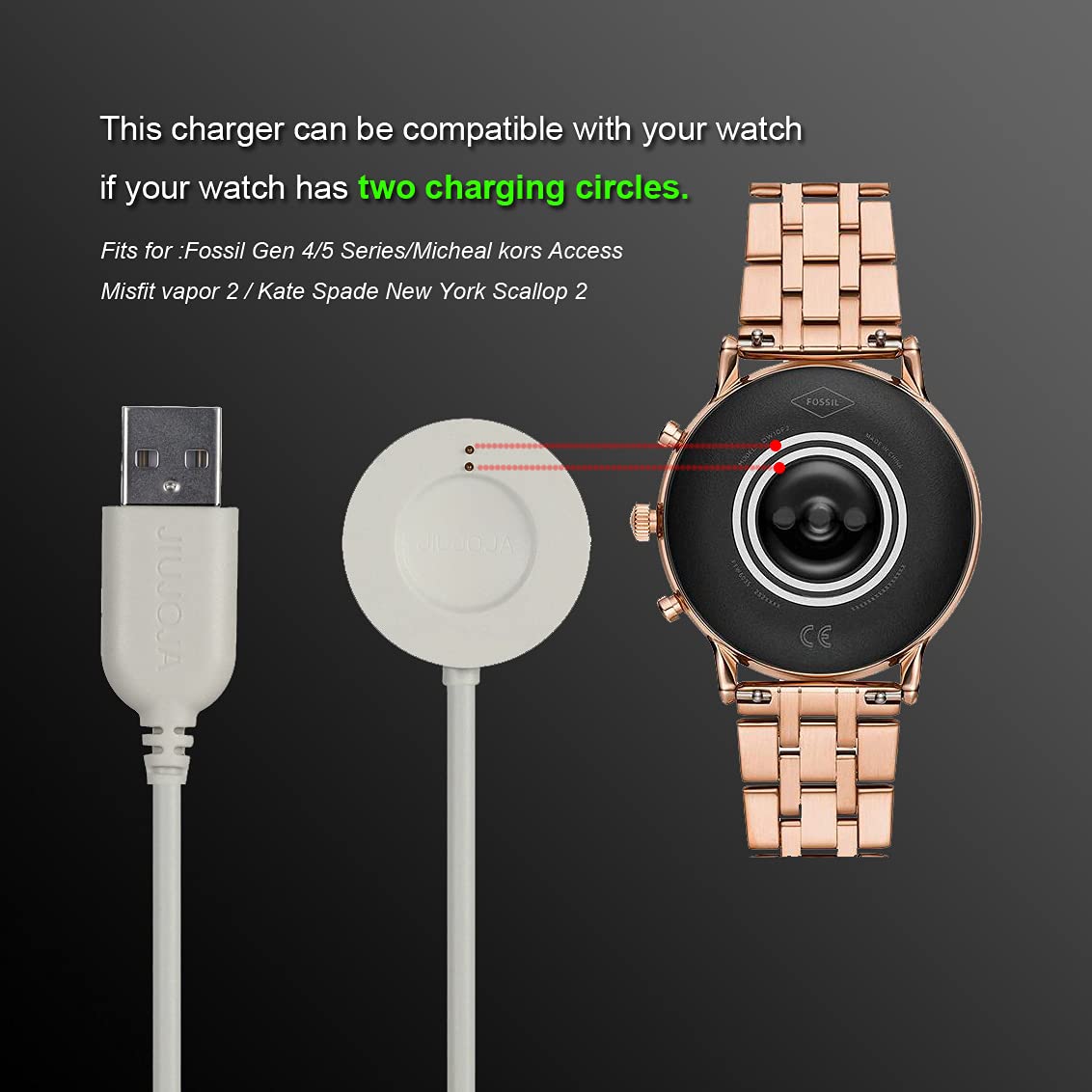 JIUJOJA 2PACK Charger Dock Compatible with Fossil Julianna,Gen 4 Explorist HR/Gen 5 Garrett Hr/Carlyle/Venture HR/Sport,Emporio Armani,Skagen falster 2,Misfit Vapor 2,Diesel Guard 2.5, Smart Watch