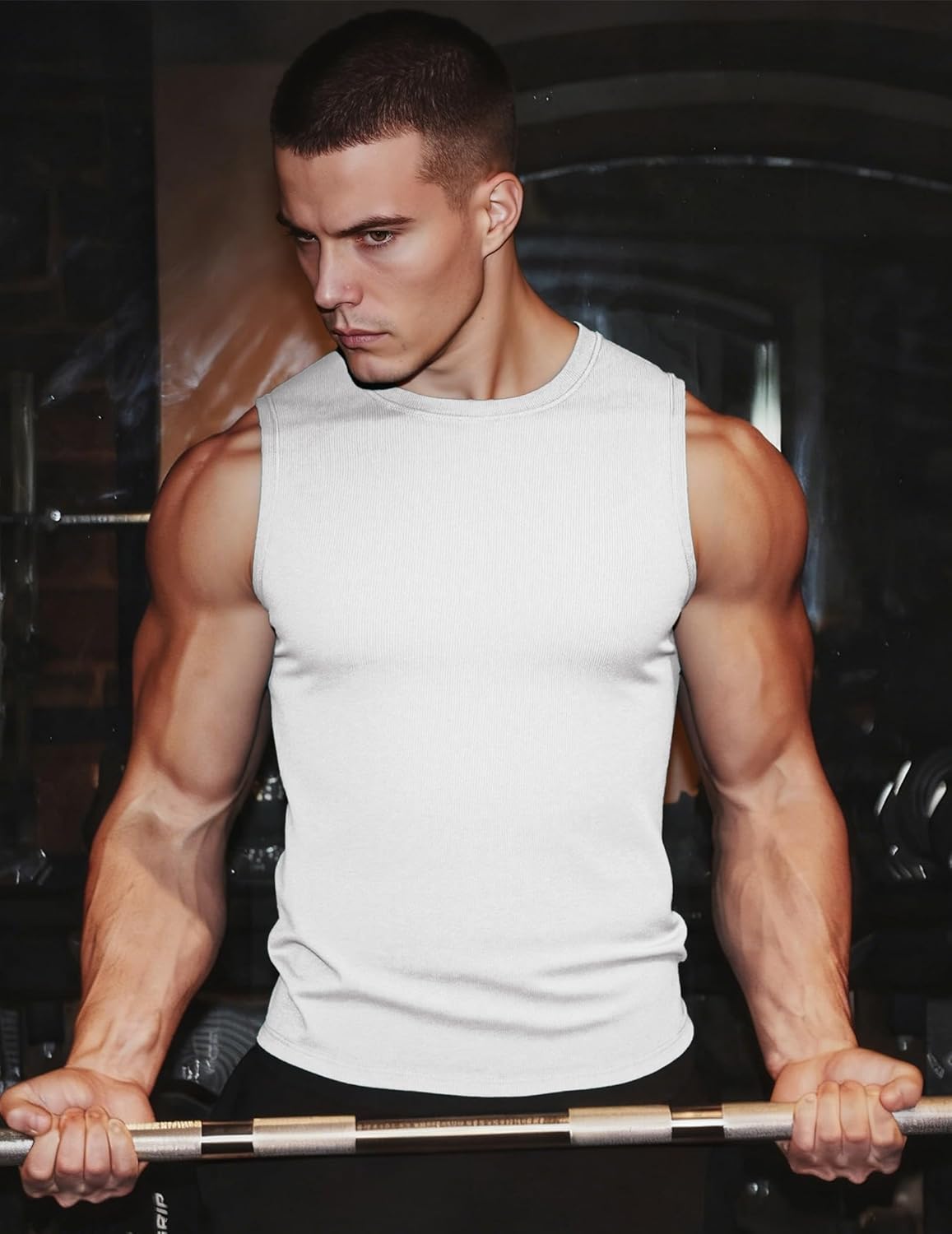 JMIERR Men’s Ribbed Tank Tops Knit Sleeveless Workout T Shirt Muscle Gym Fitness Tee