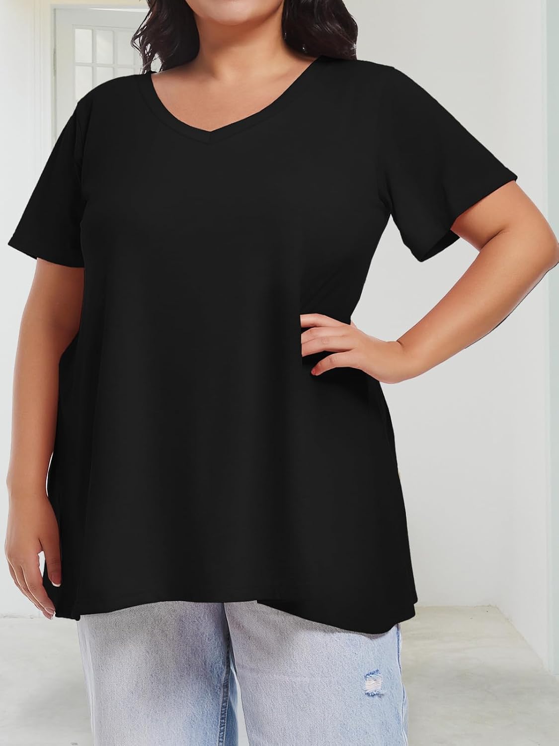 Joellyus Plus Size Tops V Neck Short Sleeve Top