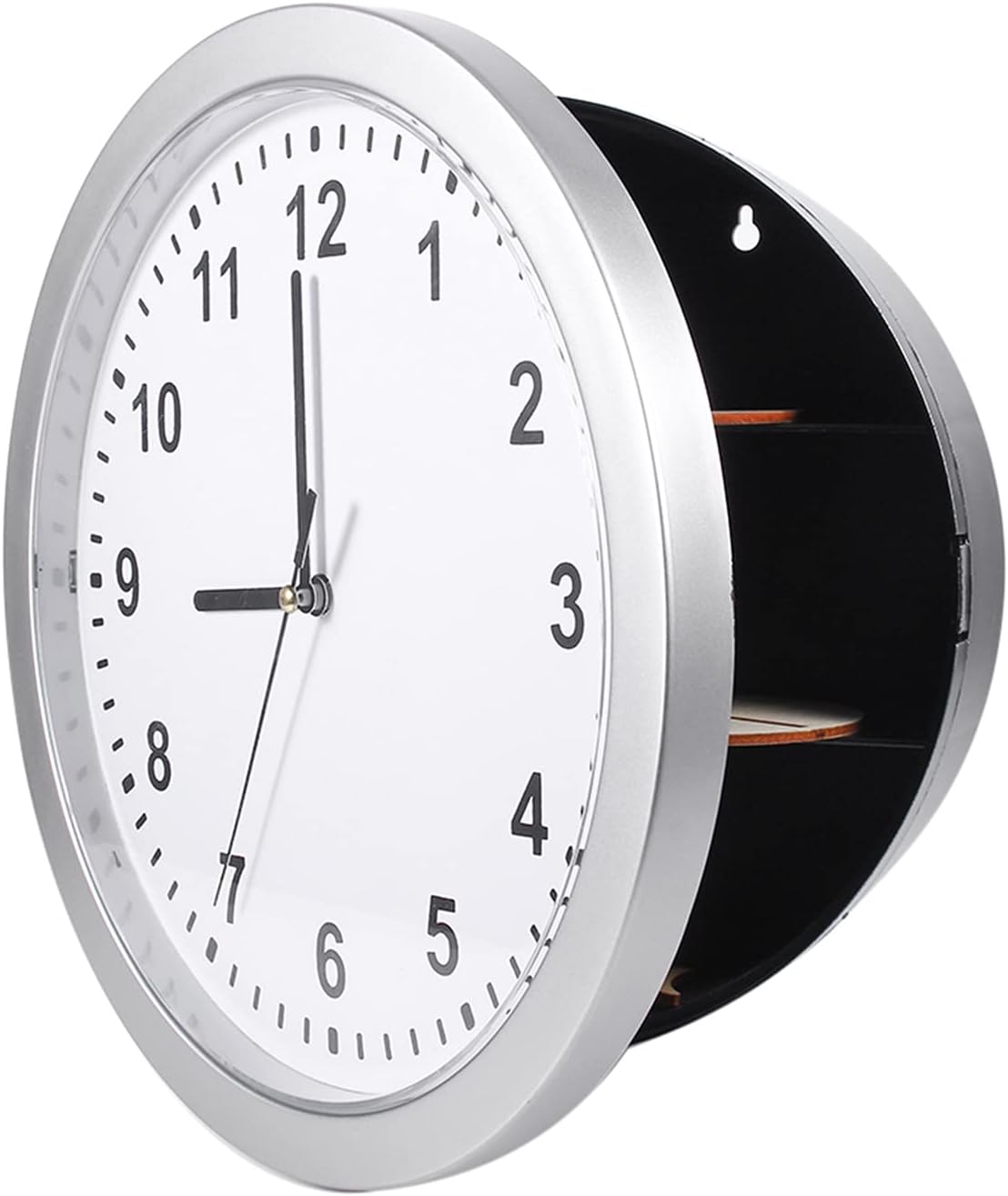 The classic silver design can be cleverly combined with a variety of decors, and the modern design complements any home or office decor. diversion safes, clock with hidden compartment, wall clock compartment has a foldable clock and a hidden safe with 3 shelvesThe place to hide your valuables is in the secret compartment behind this watchHidden storage includes three shelves to store your valuables or even extra cash