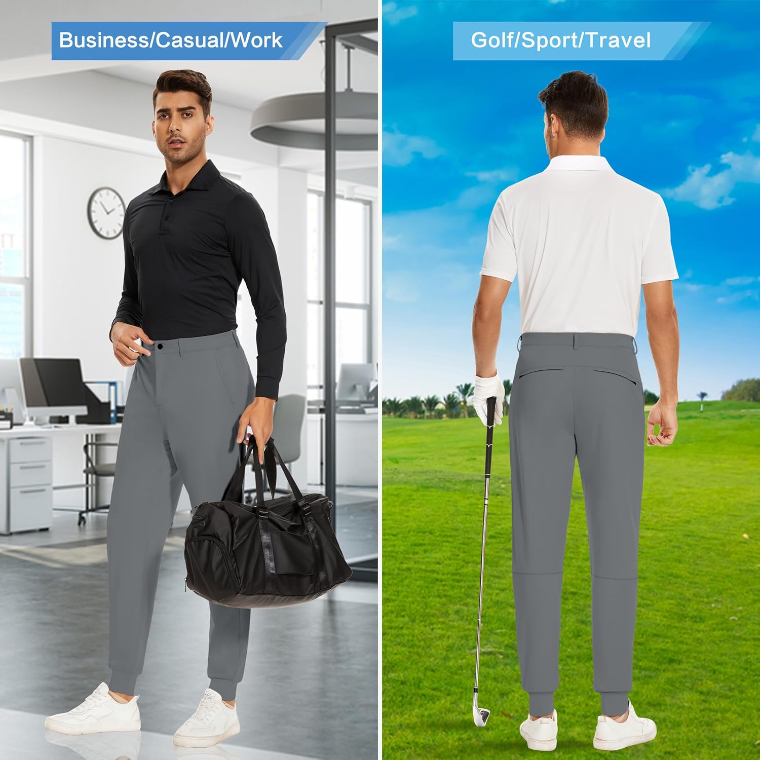 JWM Men’s Stretch Golf Joggers Pants with Belt Loops – 29″ 34″ Slim Fit Tapered Casual Business Travel Dress Work Sweatpants