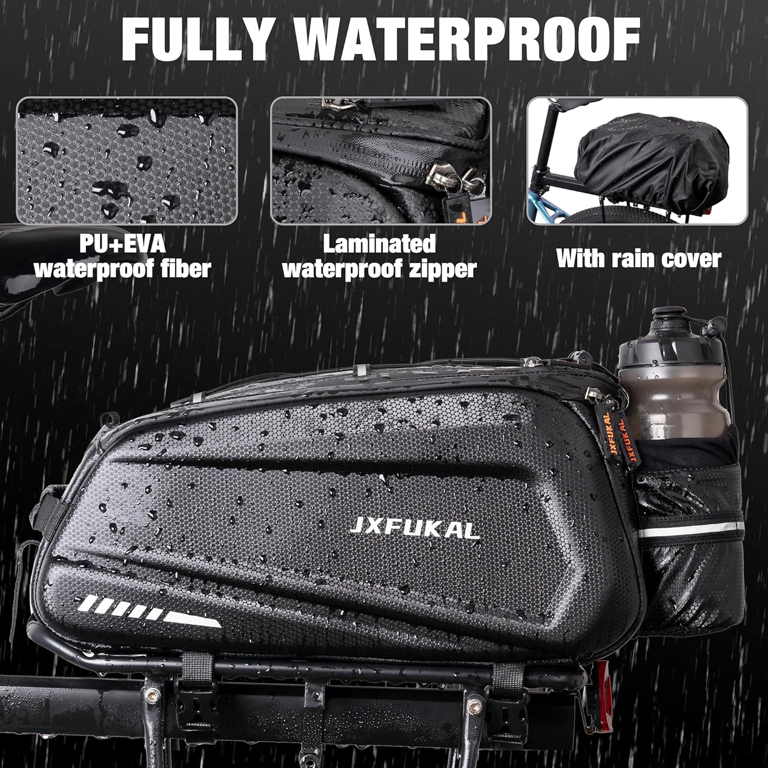 JXFUKAL Bike Bags for Bicycle Rear rack – 9.5L/17L/40L Hard Shell Waterproof Bike Ebike Trunk Pannier Saddle Seat Bag Carrier with Reflector, Rain Cover & Shoulder Strap for Commuter Travel Outdoor