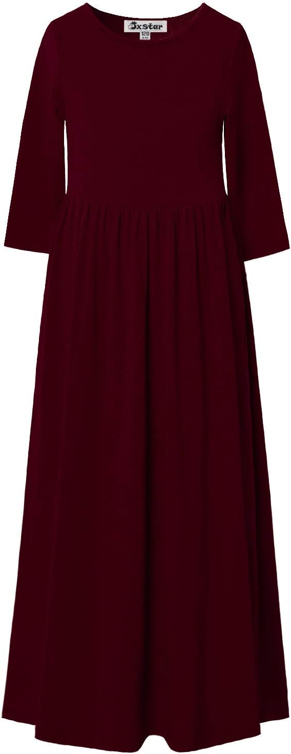Jxstar Girls Maxi Dresses 3/4 Sleeve Floral Print Long Dress Evening Dresses with Pocket