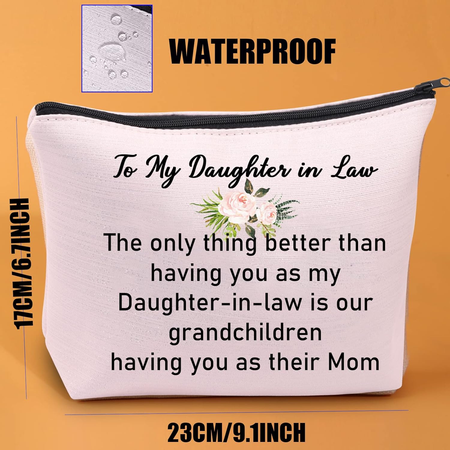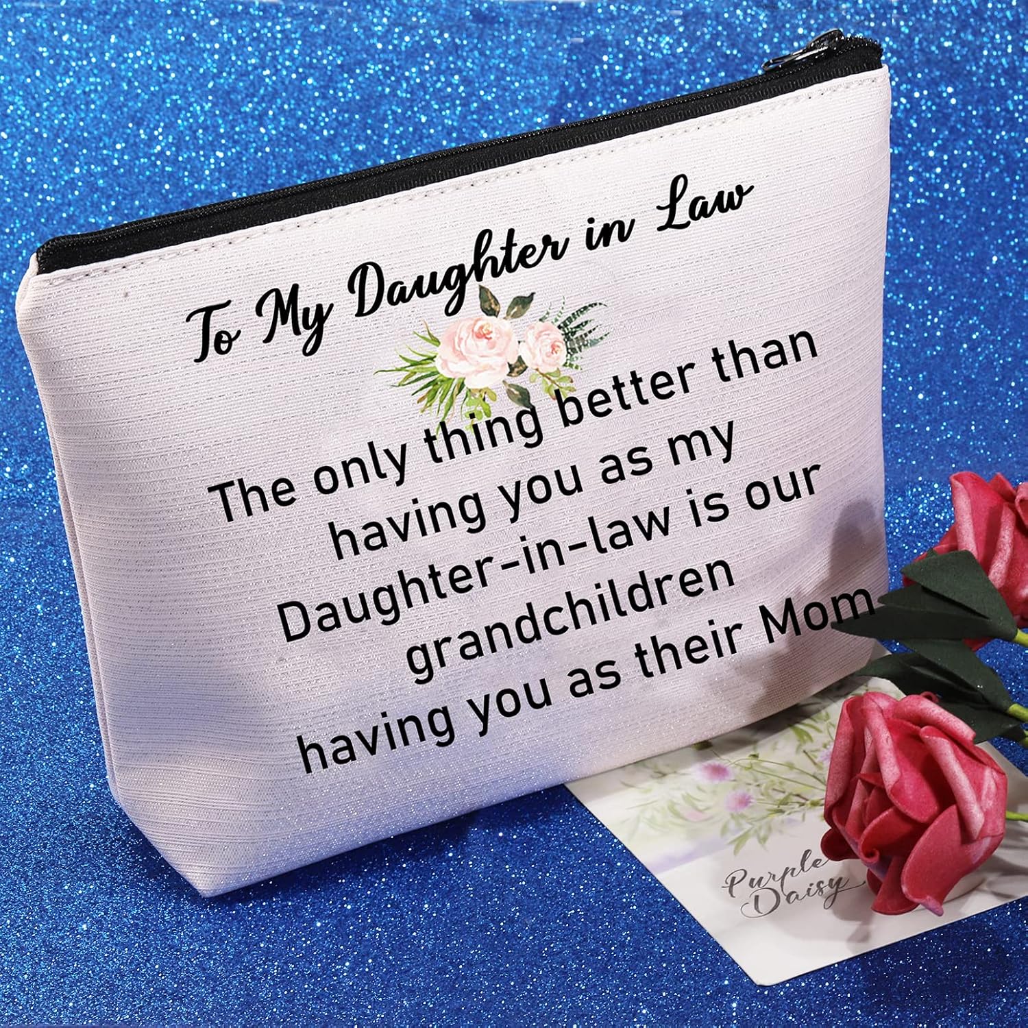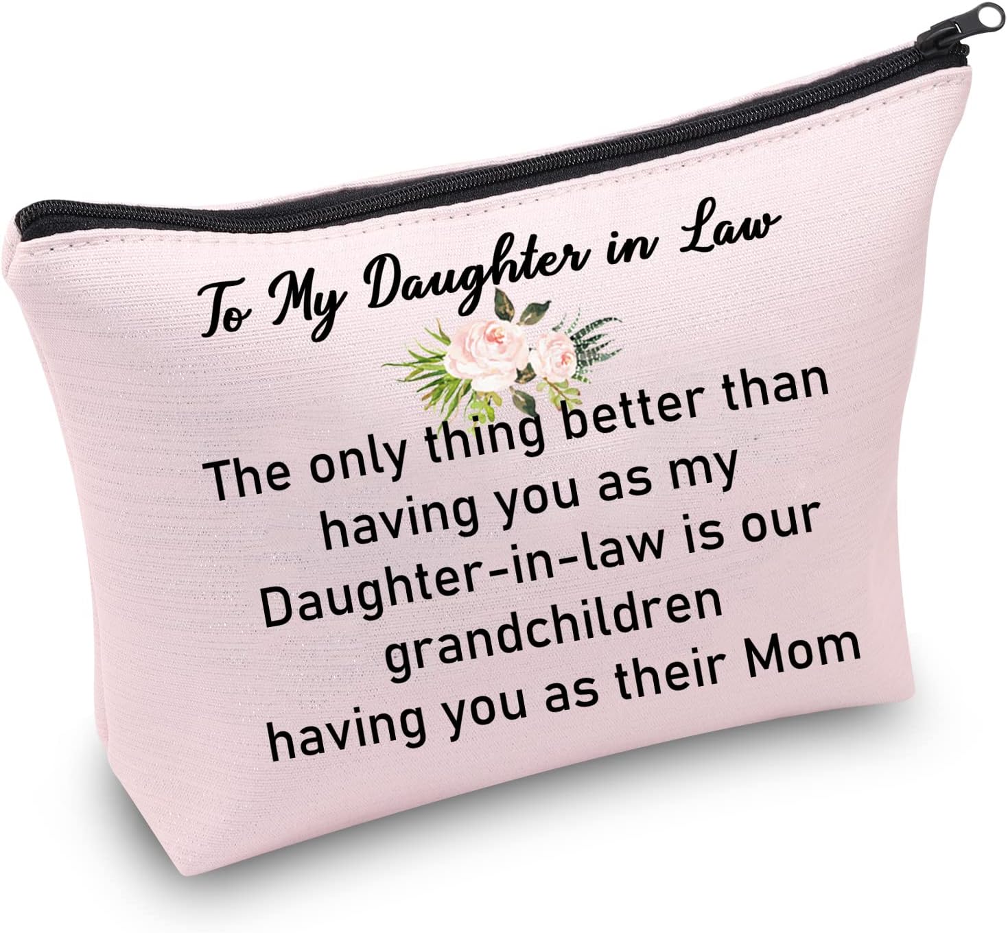 ❤Bag with Qoute:To My Daughter-in-Law,The only thing better than having you as my Daughter-in-Law is our grandchildren having you as their Mom.To My Daughter In Law Makeup bag,to My Daughter in Law Gift Ideas from Moms,Gifts For Daughter In Law From Mother In Law On Wedding Day, Birthday, Anniversary,Mothers Day, Christmas,Future Daughter-in-Law Gifts Idea.A gift to her for warm welcome her be a part of your family.She is more than just a daughter-in-law. She is also your daughter-in-heart