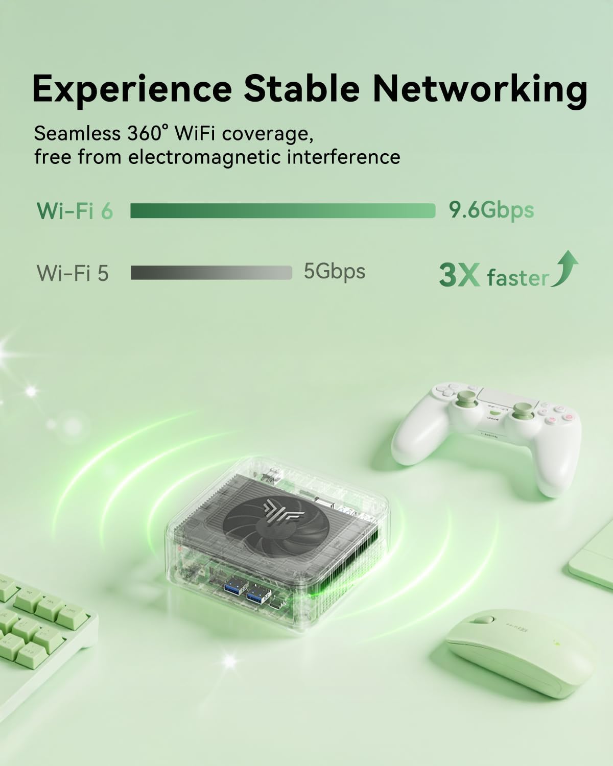 【WiFi 6/BT5.2 】Experience lightning-fast, stable connectivity with WiFi 6 (3x faster than Wi-Fi 5) —perfect for 4K streaming, smooth video conferencing, and rapid file transfers without interruptions. Bluetooth 5.2 offers faster, more reliable connections to wireless peripherals like headphones, keyboards, and mice with ultra-low latency.Built-in cooling fan, eliminating the need to worry about noise and heating