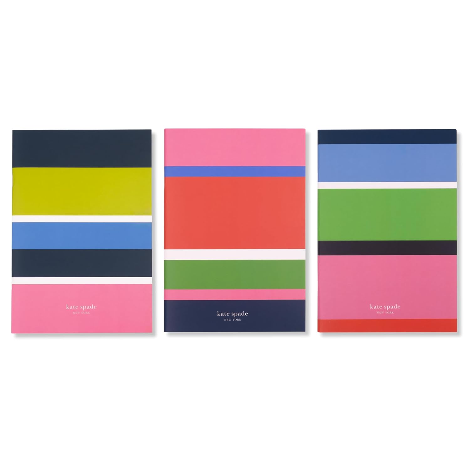 kate spade new york Soft Cover Triple Notebook Set, 3-Pack Lined Travel Journals with 80 Pages Per Book, Sunny Day Stripe