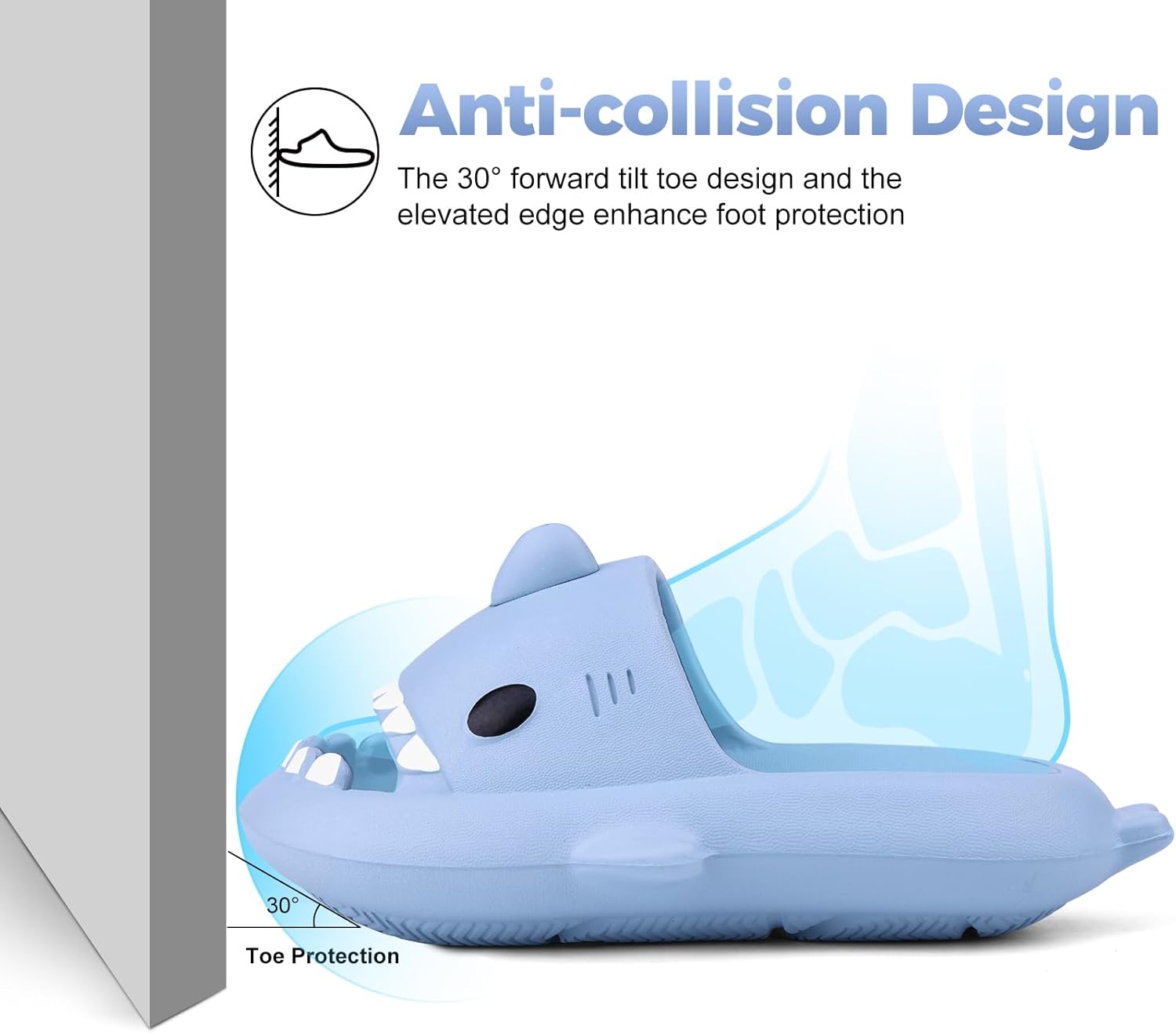 Kids Shark Slides丨Pillow Shower Sandals Quick Dry Slippers丨Toddler Boys Girls Comfy Cloud Slides丨Summer Non-Slip Thick Sole Beach Pool shoes