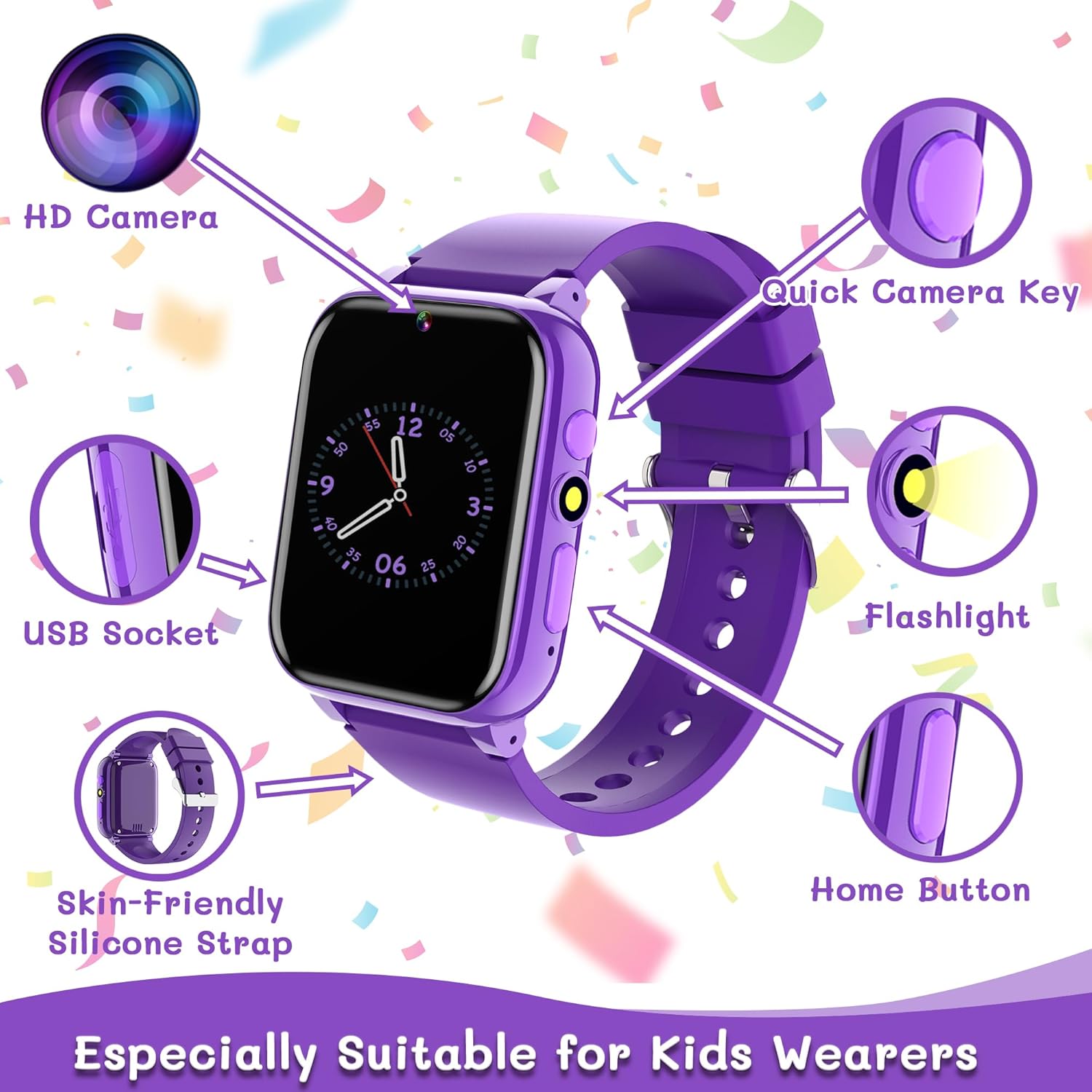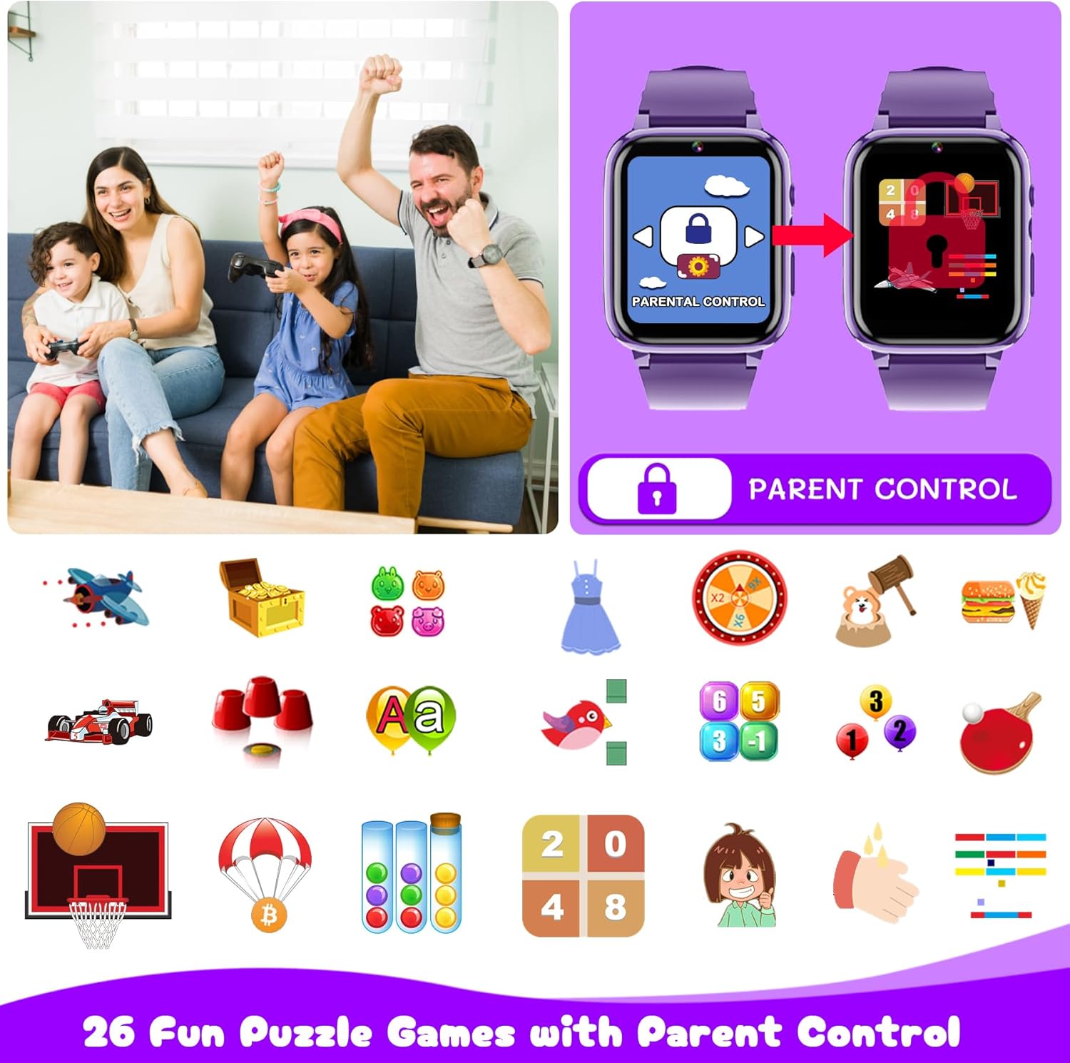 【Learning Toys for Kids】Smart watch girls goes beyond being a playful gadget. It features 13 educational functions and 26 interactive games to nurture children’s cognitive and logical skills, suitable for ages 3-12. For girls aged 8-12, its girls watches ages 8-12-tailored learning modules and creative design spark curiosity, while stylish interfaces keep kids watches for girls engaged. Built-in parental controls let you manage this kids watch girls, ensuring healthy screen time between study and entertainment—ideal as a gifts for 10 year old girls or birthday gift for 8 year old girl.