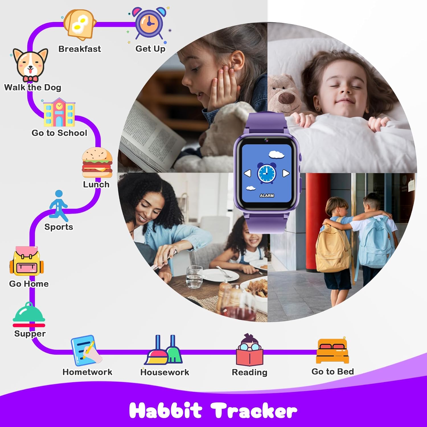 【Muti-Functional Smart Watch for Kids】Kids watch girls, the upgraded Spodus smart watch for girls is pre-installed with more applications like learning cards, audiobooks, and habit trackers, while retaining essential features: camera, photo/video shooting, music player, recorder, calculator, calendar, torch, pedometer, games, stopwatch, and timer. This smart watch for girls perfectly balances fun and functionality for girls of all ages, making it a top choice among watches for girls.