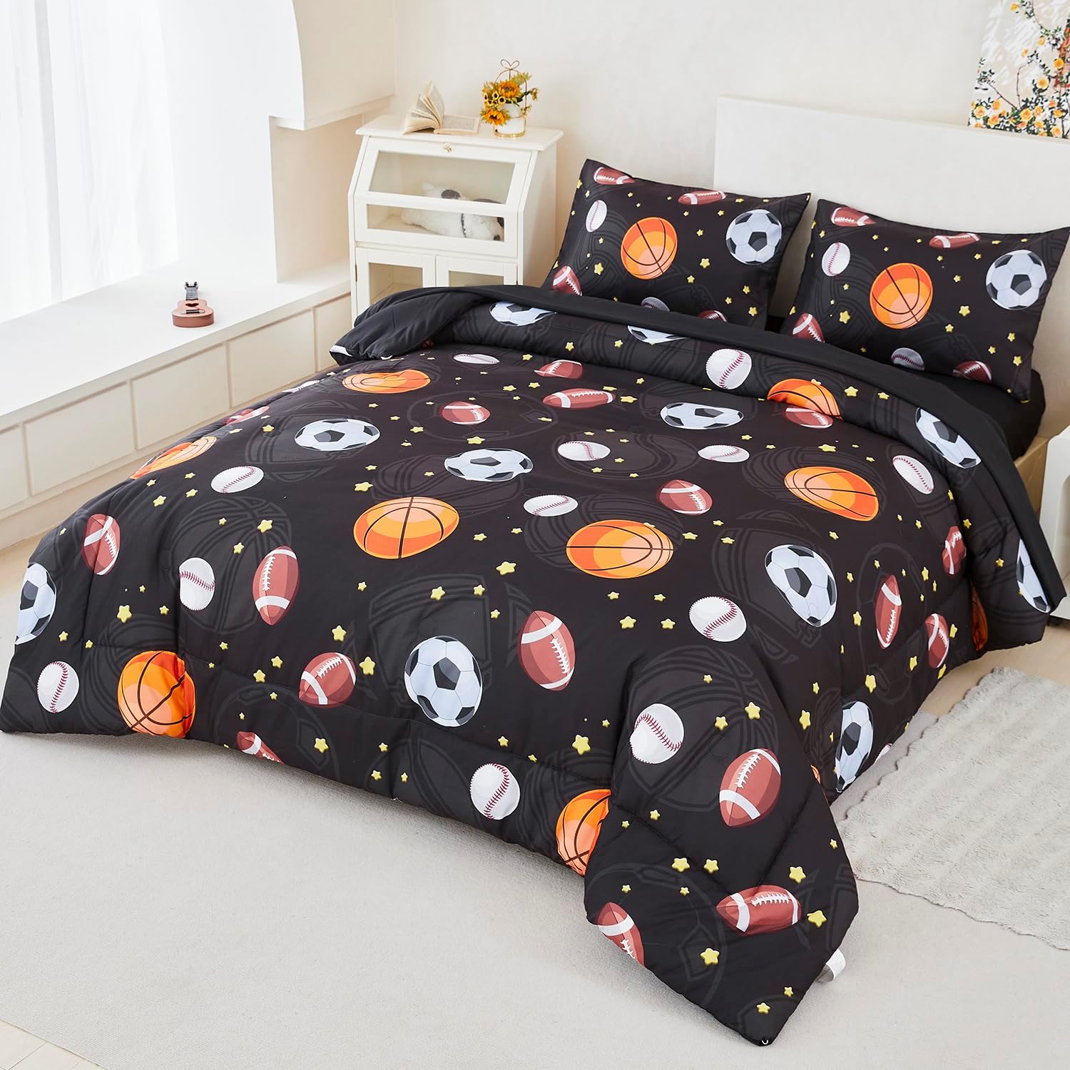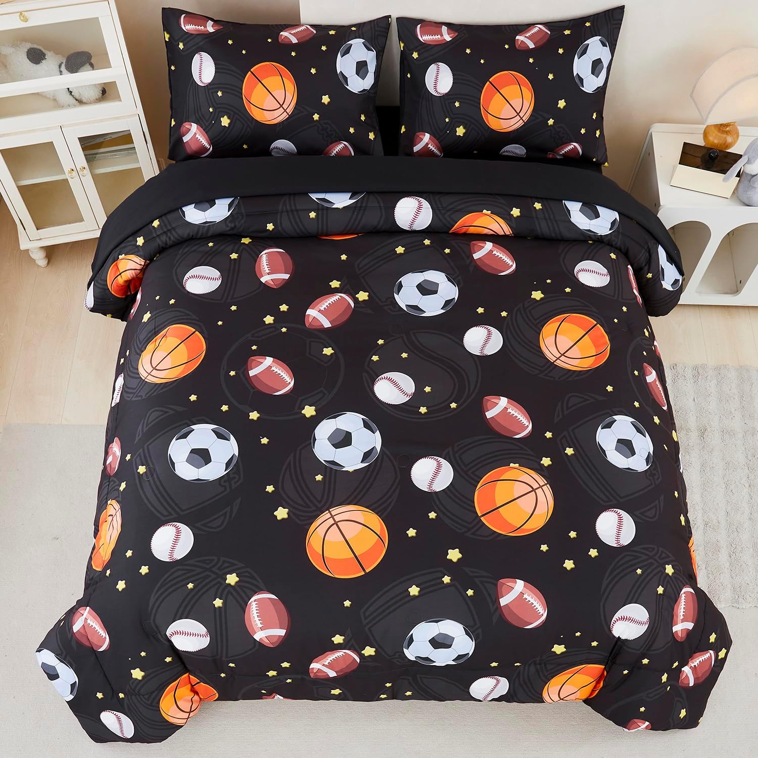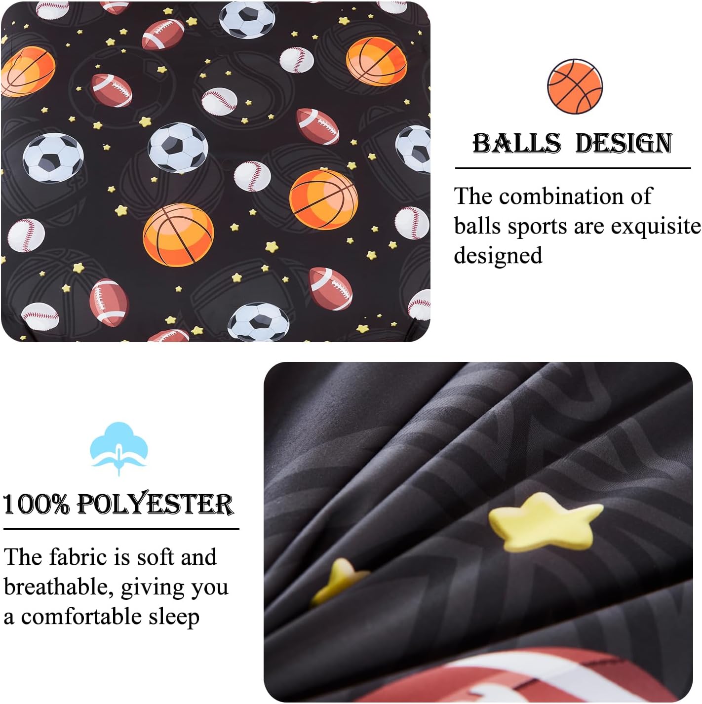 Soft Cozy Fabric: Our Baseball Basketball Soccer bedding set is made of 100% polyester, with the whole piece filling, making it more durable.The breathable and lightweight fabric provides you a great sleep experience.