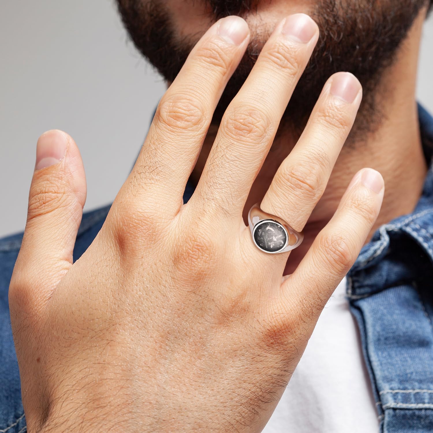 King Will Stainless Steel Ring for Men – Meteorite Inlay Matte Finished Black/Silver/Gold Plated Pinky Signet With Skull/Lion Pattern – Comfort Fit Thumb Ring Size 7-14
