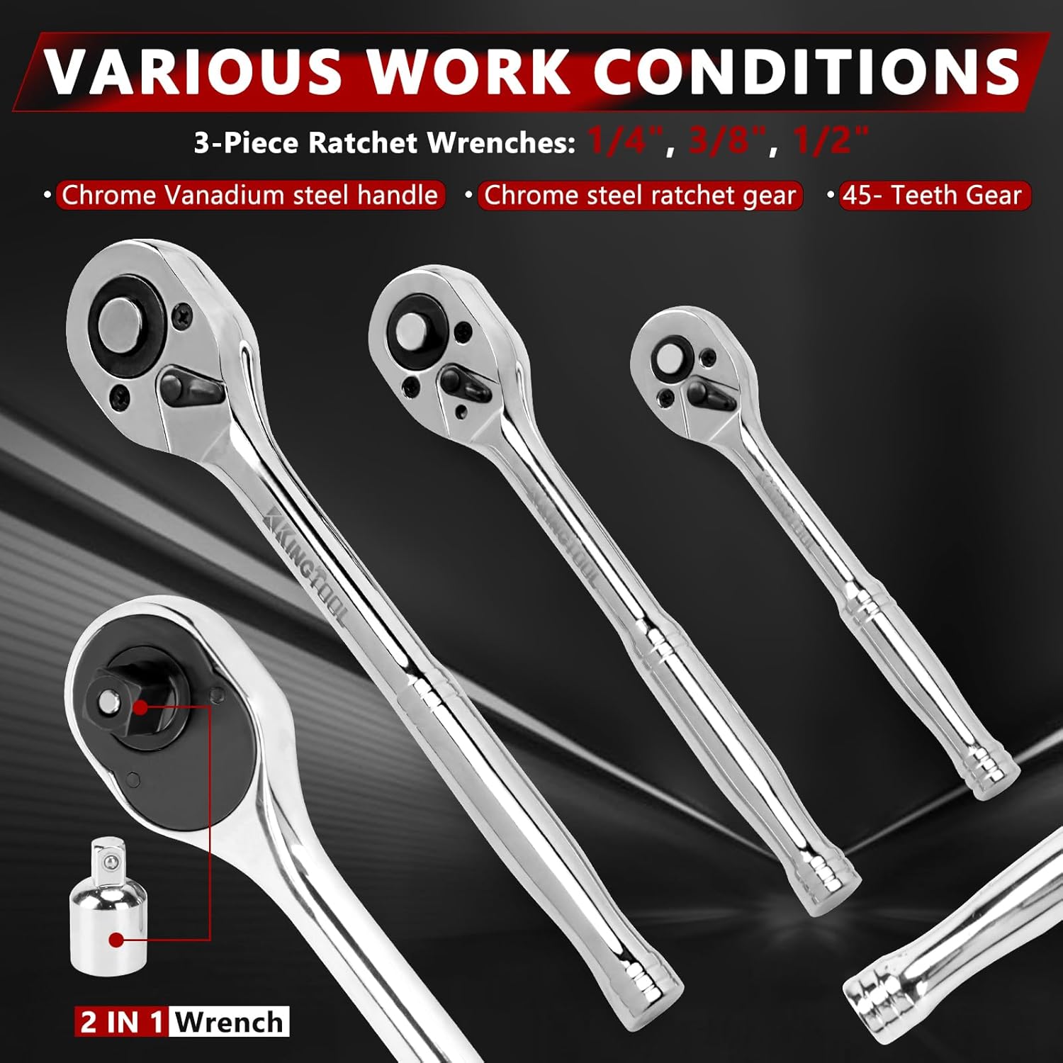 EFFICIENT SOCKET AND RATCHET TOOLS: Equipped with 1/4″, 1/2″, and 3/8″ratchets with quick-release buttons, this set features a 45-tooth ratchet for maneuverability in tight spaces. The socket series includes 1/2″socket set, 1/4″ socket set,3/8″ socket set, both metric socket set and SAE socket set, deep socket set and shallow socket set. These socket wrench sets meet all your automotive and household needs
