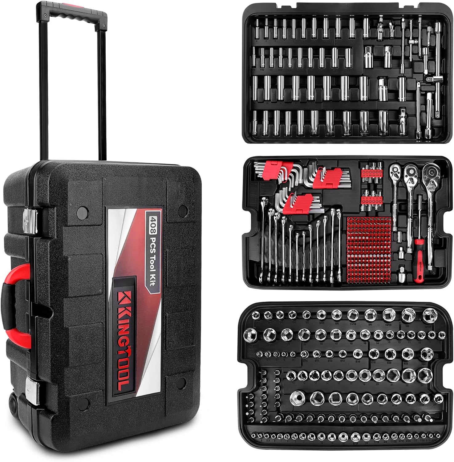 KingTool 408-Piece Mechanic Tool Set – Socket Set with Heavy Duty Tool Box Storage Case for Home, Automotive, Bike Projects