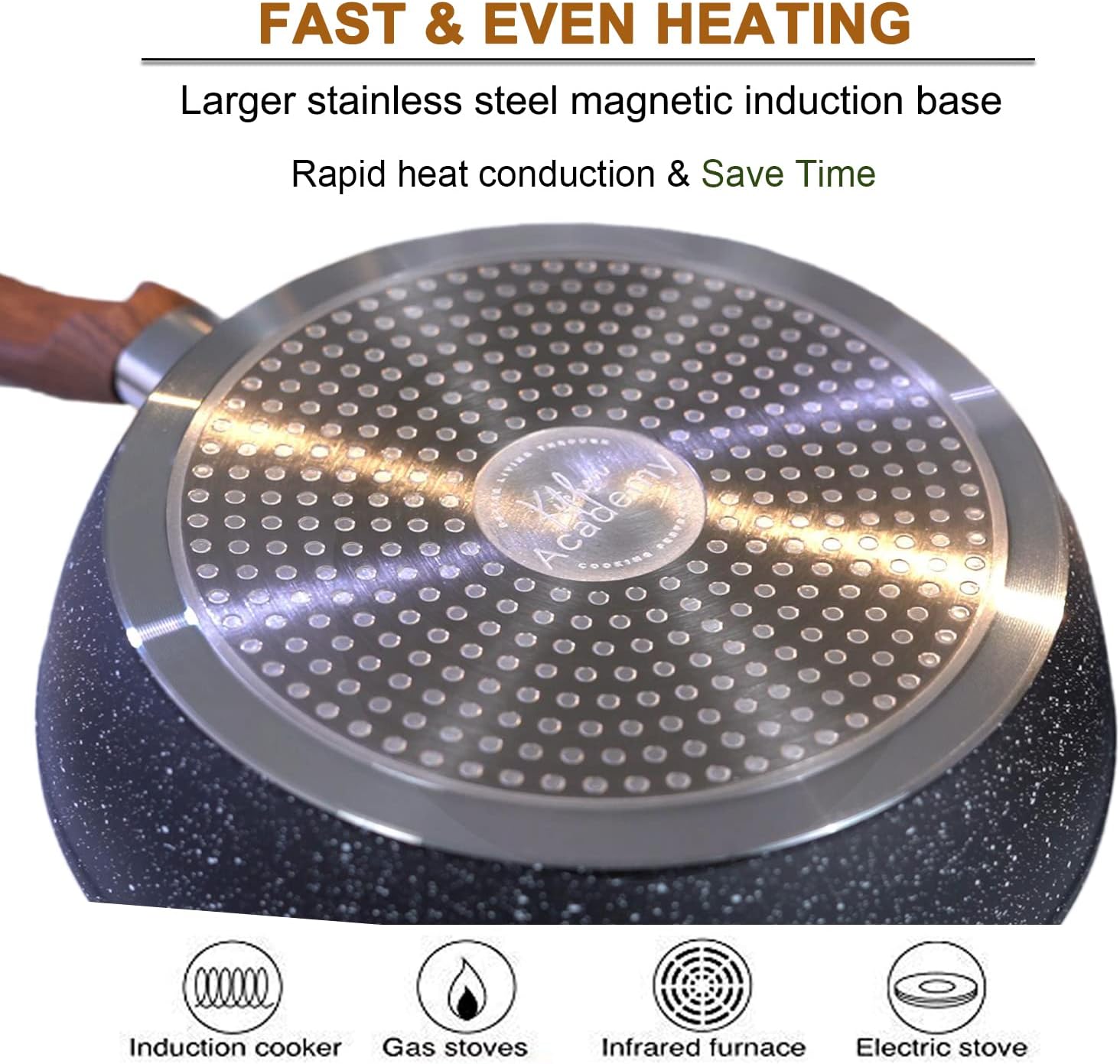 𝑮𝒓𝒆𝒂𝒕 𝑸𝒖𝒂𝒍𝒊𝒕𝒚 & 𝑺𝒆𝒓𝒗𝒊𝒄𝒆 : Quality first, Service Utmost. Each Kitchen Academy cookware passes a strict multi-inspection process. If you meet any problems, don’t hesitate to contact our 24/7 online customer service which will reply to you ASAP to help with your worries