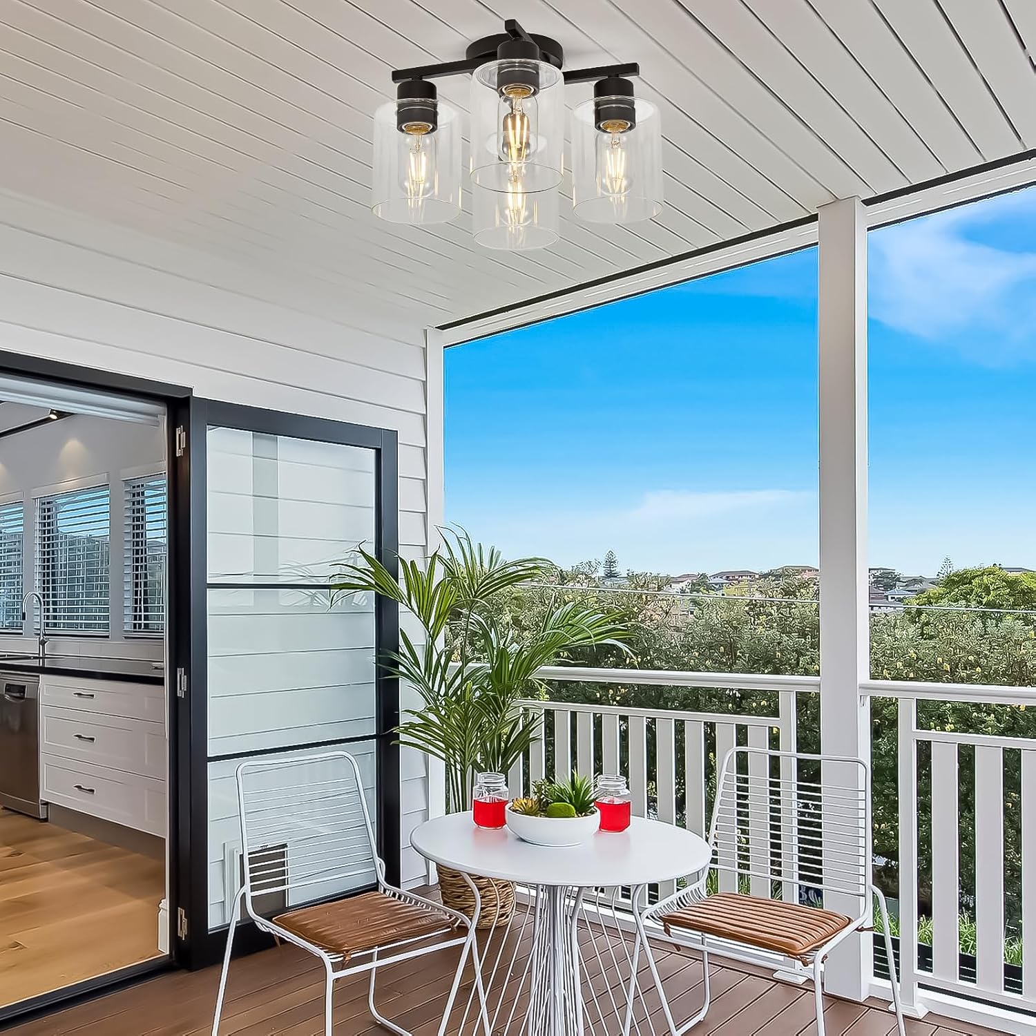 [Materials]:The black light fixtures ceiling mount kitchen is crafted with UL-certified, 4pcs E26 ceramic sockets and wires, made of metal materials and clear glass shade. The surface of kitchen light fixture is painted and rust-proofed to give a more textured appearance, and will not change color after a long time of use