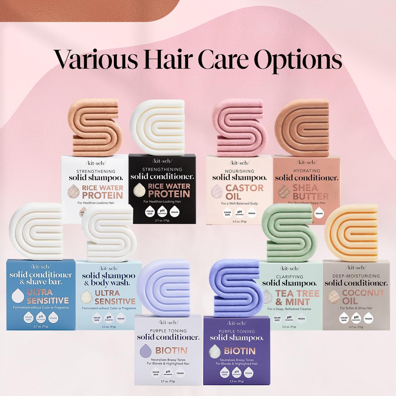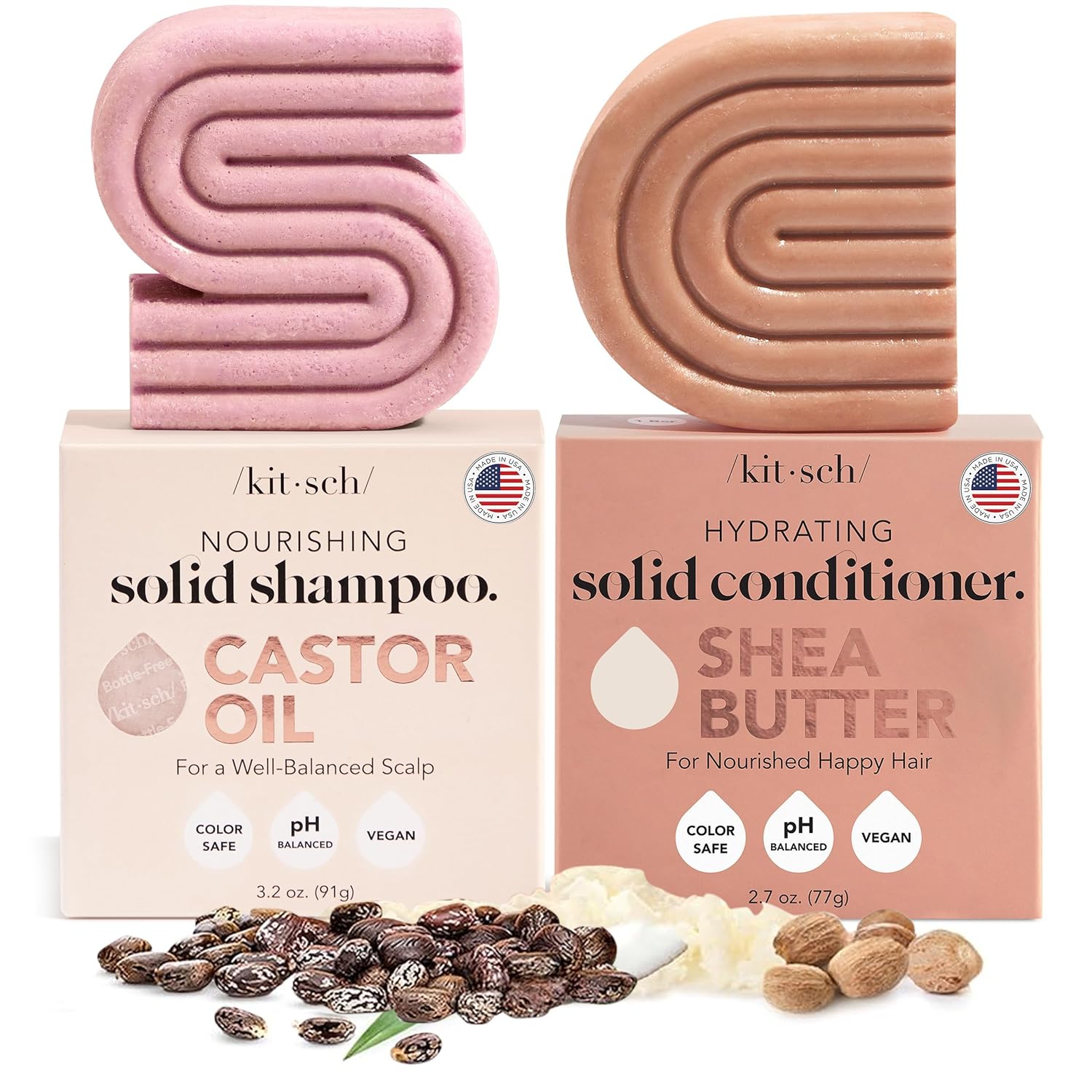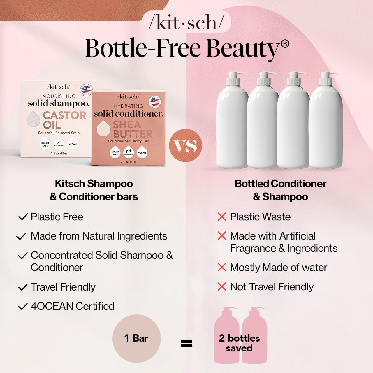 Kitsch Castor Oil Shampoo & Shea Butter Conditioner Bar – Shampoo and Conditioner Set – Hydrating & Moisturizing Bar Soap – Free of Paraben, Silicone, Sulfate – Made in USA – 2pc Set