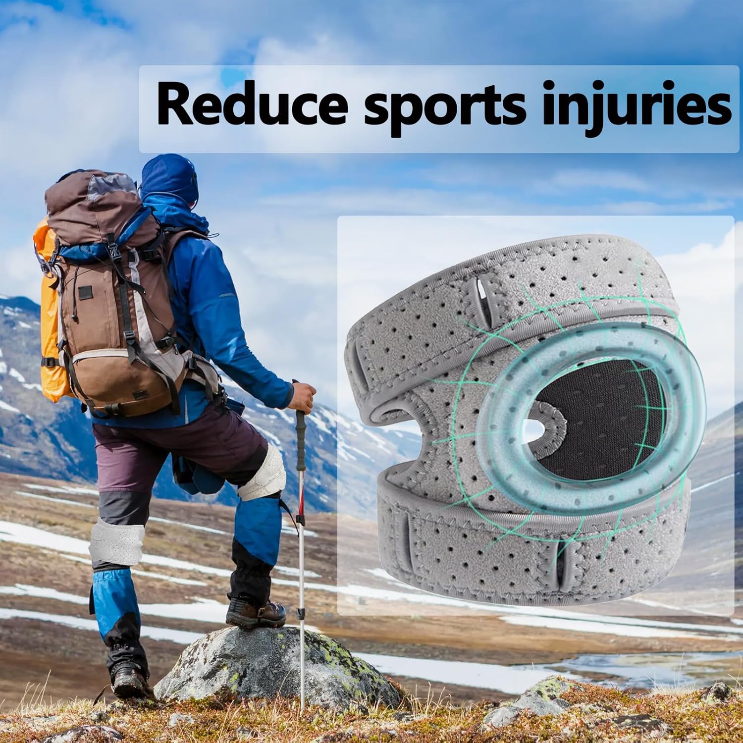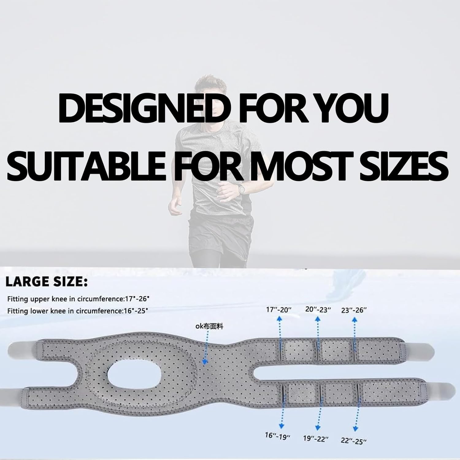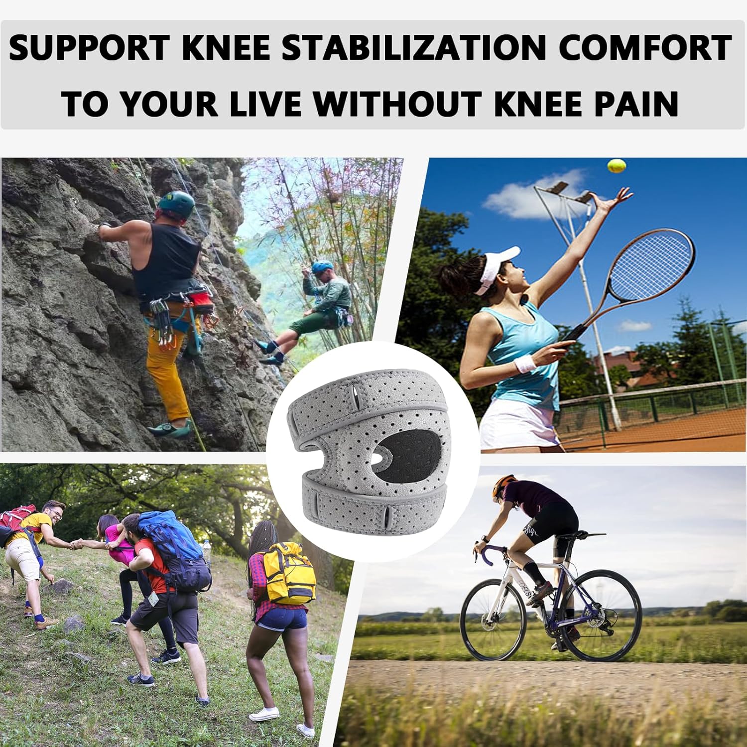 Elastic Compression Band & Adjustable Strap: This knee brace features a flexible compression band and an adjustable strap, allowing you to easily customize the fit for secure and comfortable support. The design helps keep the brace in place during various activities, offering stability without restricting movement.