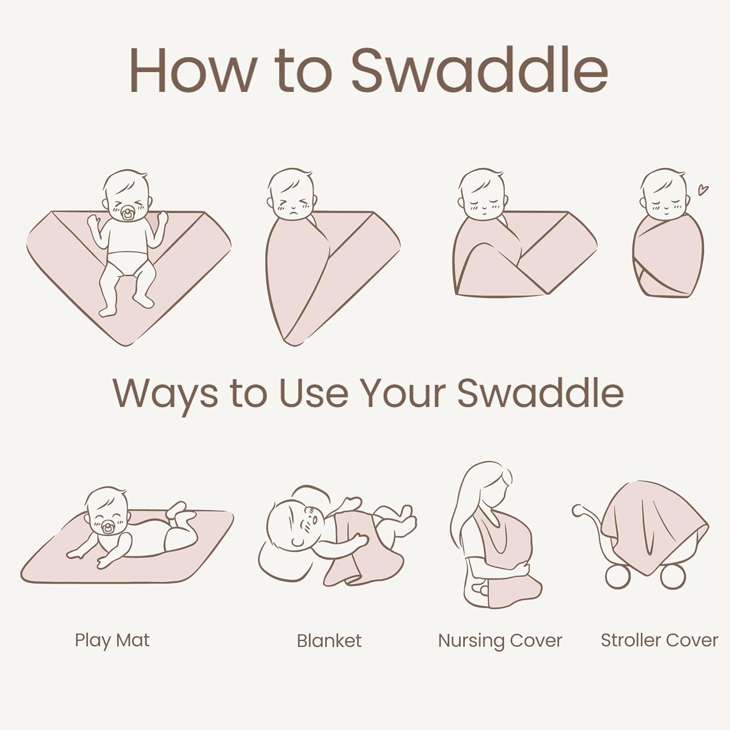 Multi-purpose: You will have endless creative ways to use our swaddle blankets! This swaddle blankets set will be the perfect gift for any occasion: shower gift, baby photography prop, or you can use it as a swaddling blanket, changing pad, nursing cover or stroller cover, scarf, lightweight swaddling blanket, sun shade, picnic or Tummy Time Blanket.