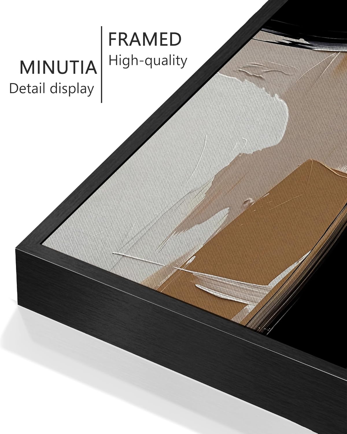 Neutral Abstract Art – Featuring minimalist line designs and textured beige tones, this black abstract framed wall art draws inspiration from mid-century modern aesthetics, adding timeless elegance to any space.