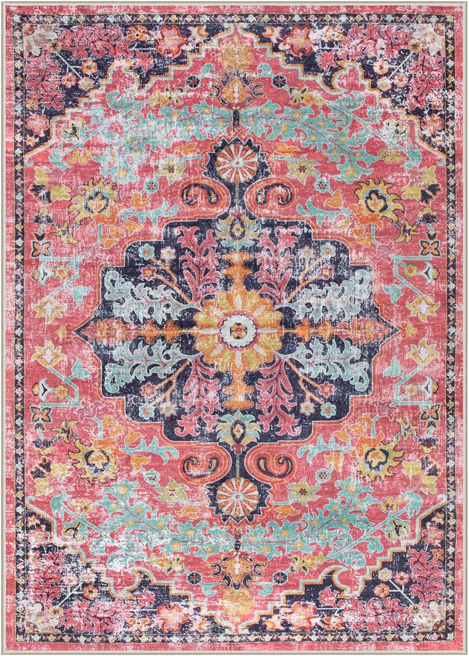 [Exclusive Design Accent Rug] – This 5×7 area rugs brings a vibrant color scheme and bohemian floral style print to your space. It mainly features a fuchsia, yellow stone, pretty light blue, pink ash brown design patterns, has a mystical quality that feels right out of a fairy tale, with purposeful distressing to add vintage appeal to your space.