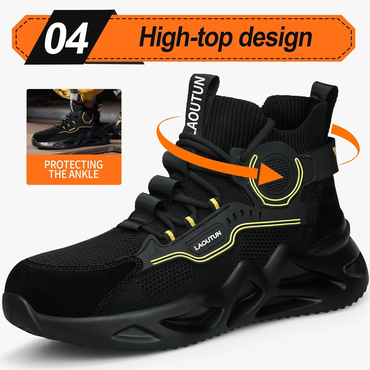 LAoutun Steel Toe Shoes for Men Women Work Shoes Safety Sneakers Shoes Comfortable Lightweight Puncture Proof Slip on Indestructible Work Shoes