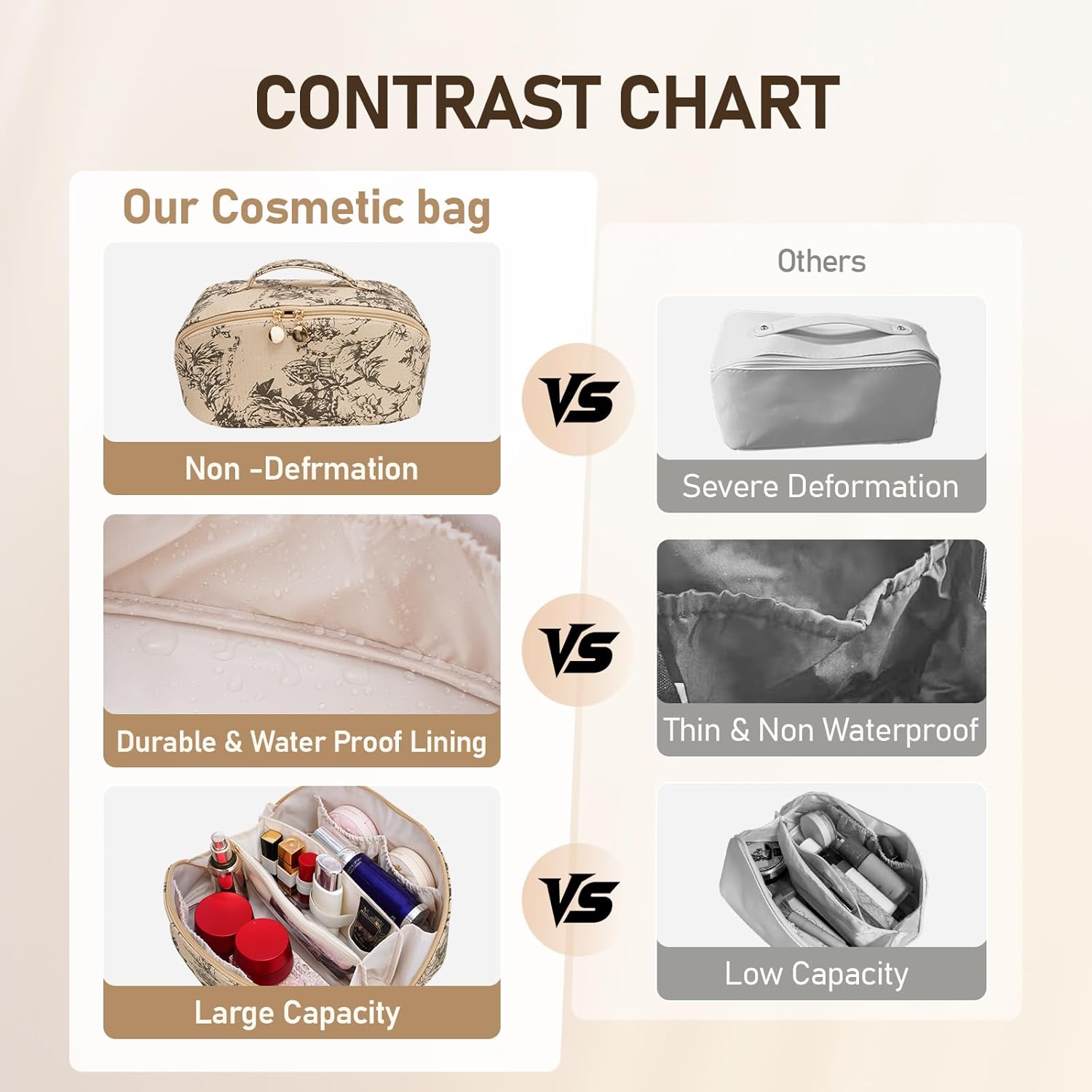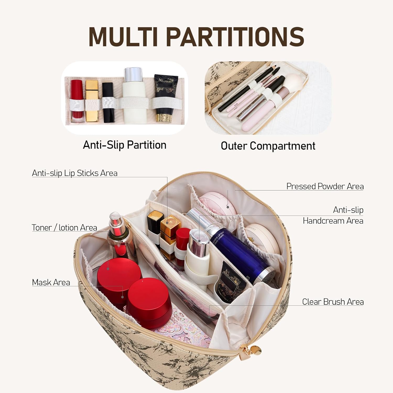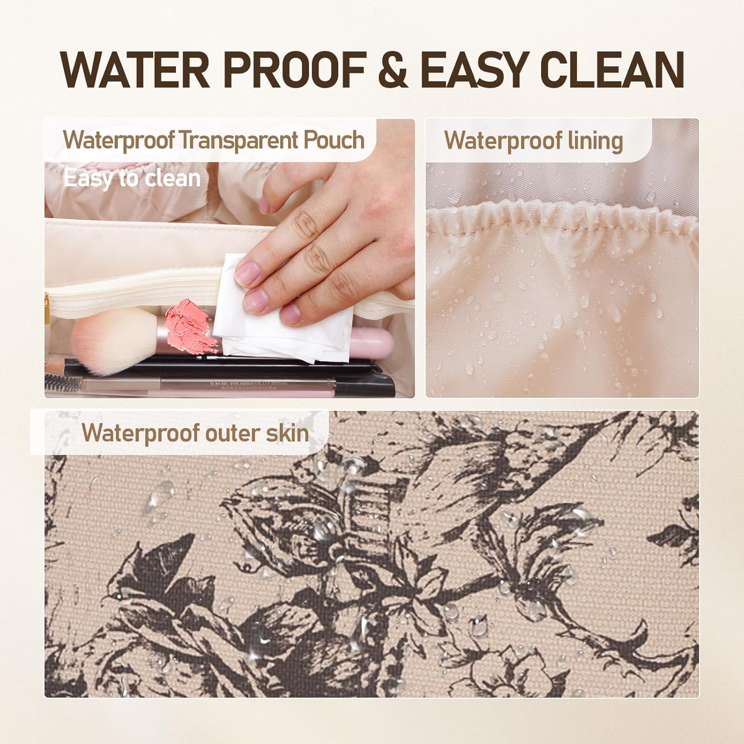 💗Upgrade Version With Premium Materials: Waterproof PU Leather Make up bag for women, that’s easy to clean, with a durable waterproof lining. The makeup brush compartment is made from clear TPU, to keep brushes neatly stored and visible