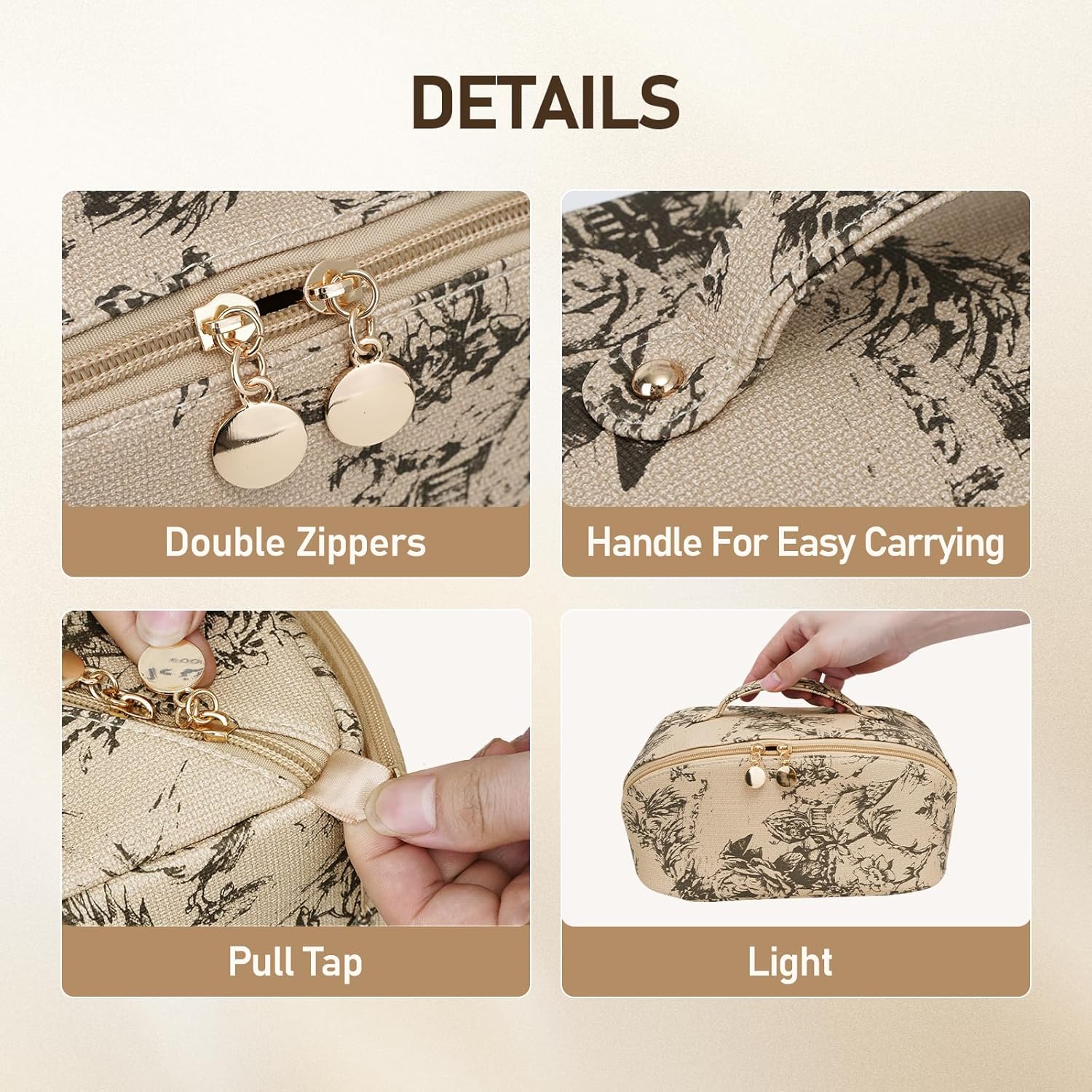 💗6 Colors Popular Travel Makeup Bag Aavailable, White ,Black, Pink, Brown,Blue and Lighting Coffee comes with Protective Packaging .It will be a best giving for ladies on Valentine’s Day, Mother’s Day, Birthdays, Christmas, and more.