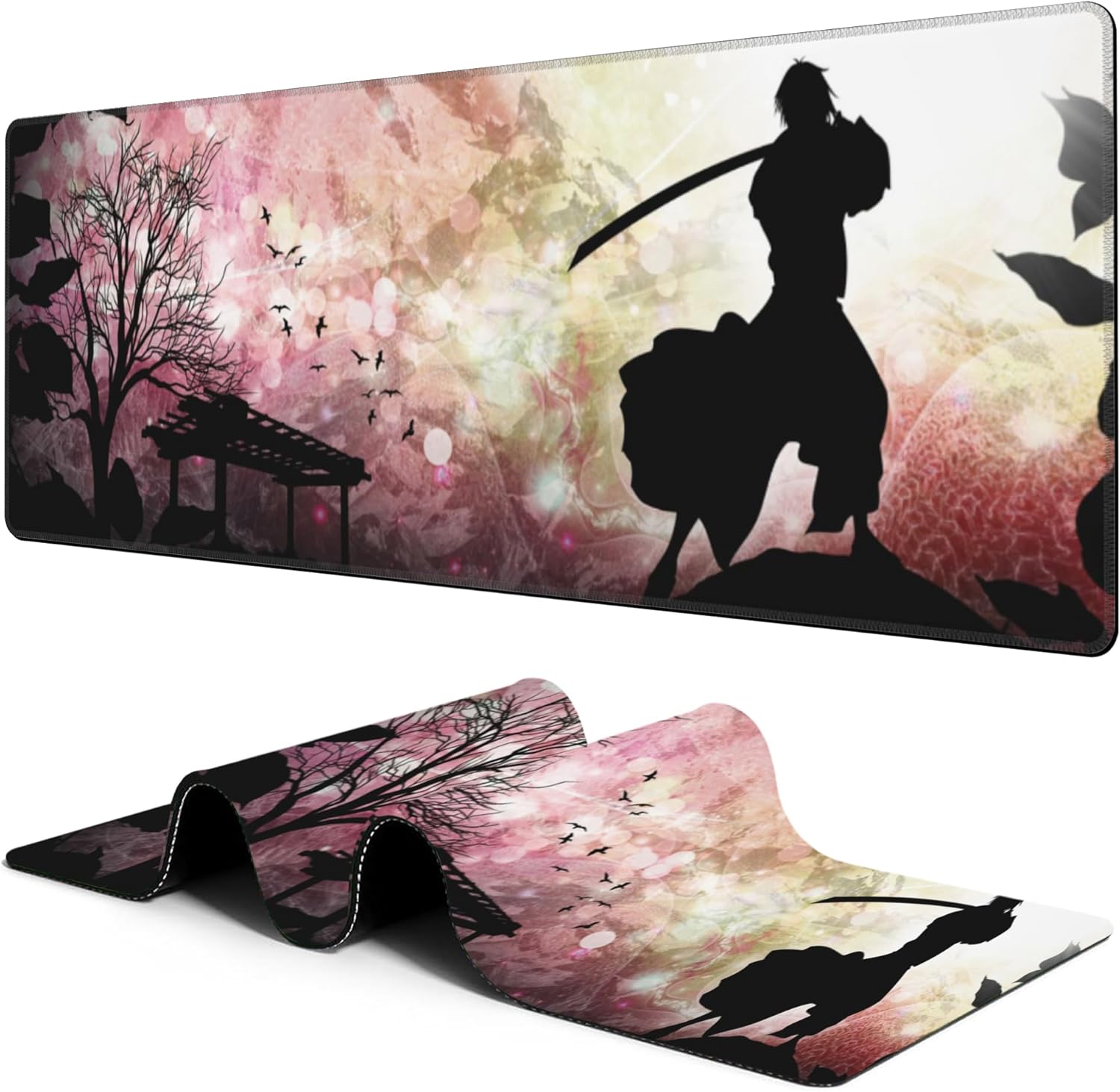 Large Gaming Mouse Pad for Desk Japanese Warrior Big Desk Mat Extended Mousepad with Stitched Edge and Non-Slip Base Long Computer Keyboard Mouse Mat for Home Office Work, 11.8 x 31.5 Inch