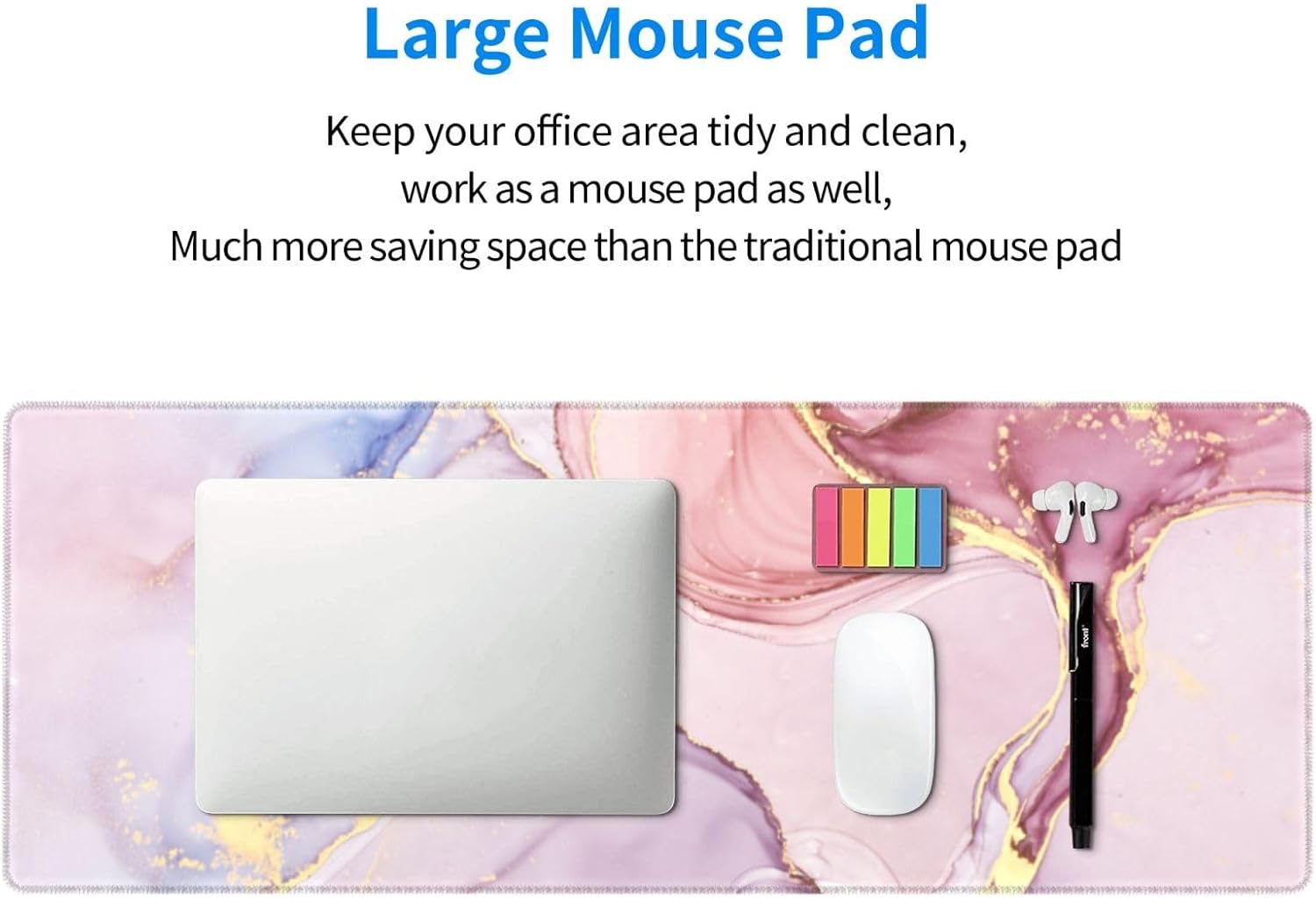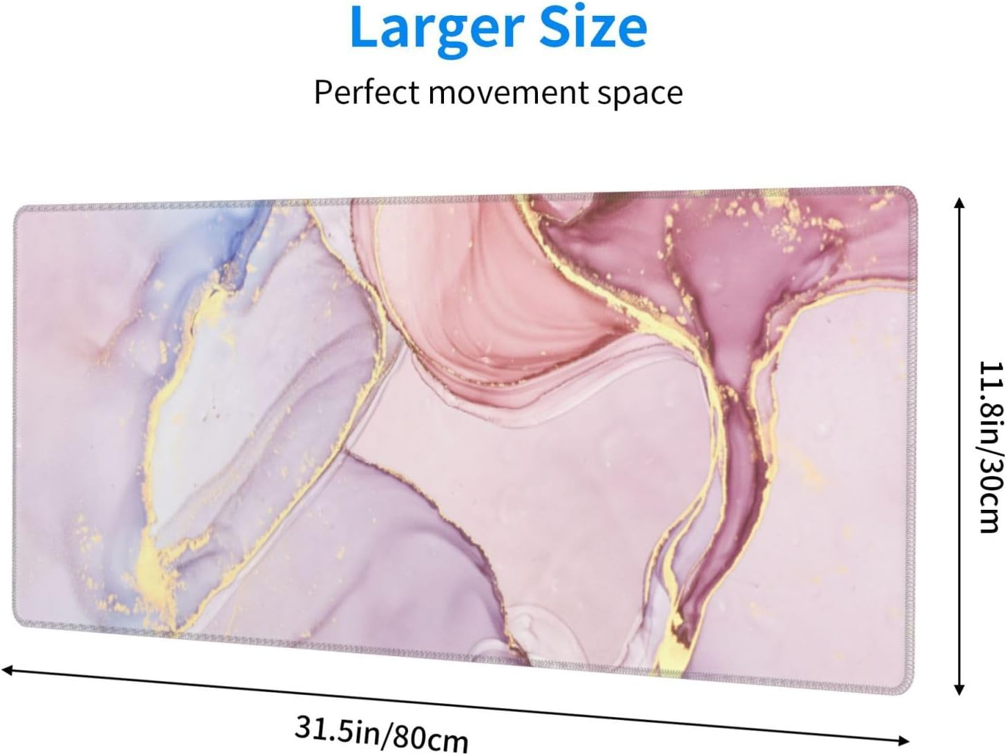 Large Mouse Pads for Desk: Mouse pads for desk, full-width printing, single-sided printing. pink marble gaming mousepad made of 100% polyester cloth, 3mm rubber pad at the bottom. extended xl mouse pad, table mat provides a larger moving area to cover the keyboard, mouse and other things on the desktop, providing the perfect mobile space for gaming or work for office desk decor.