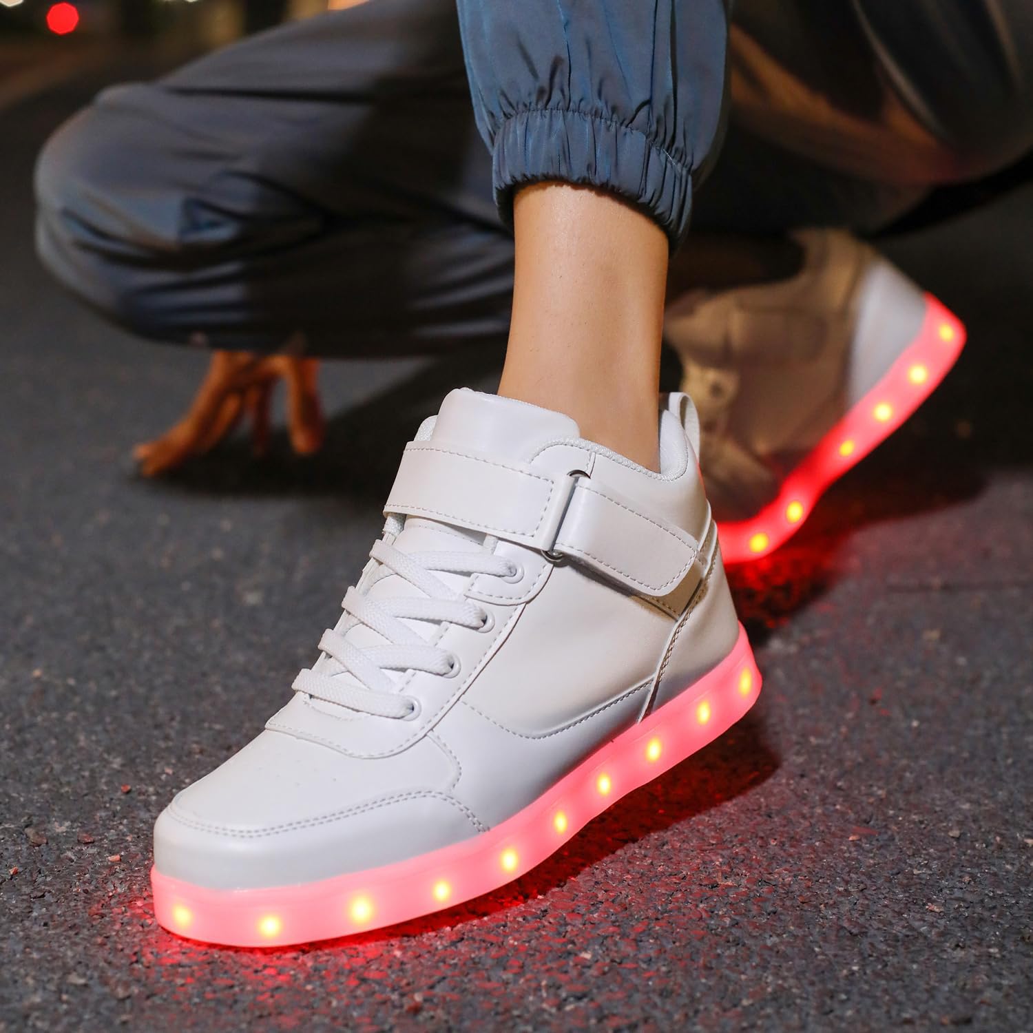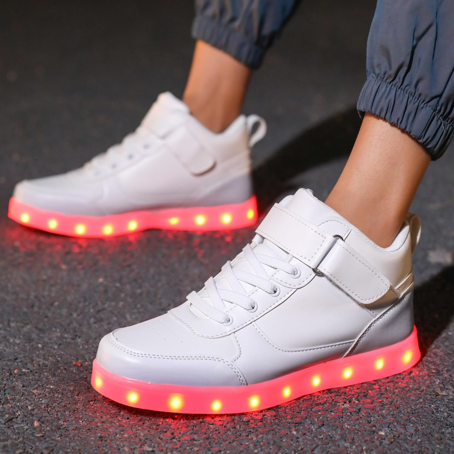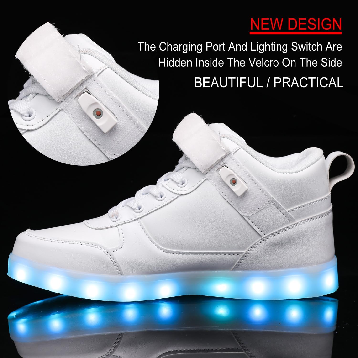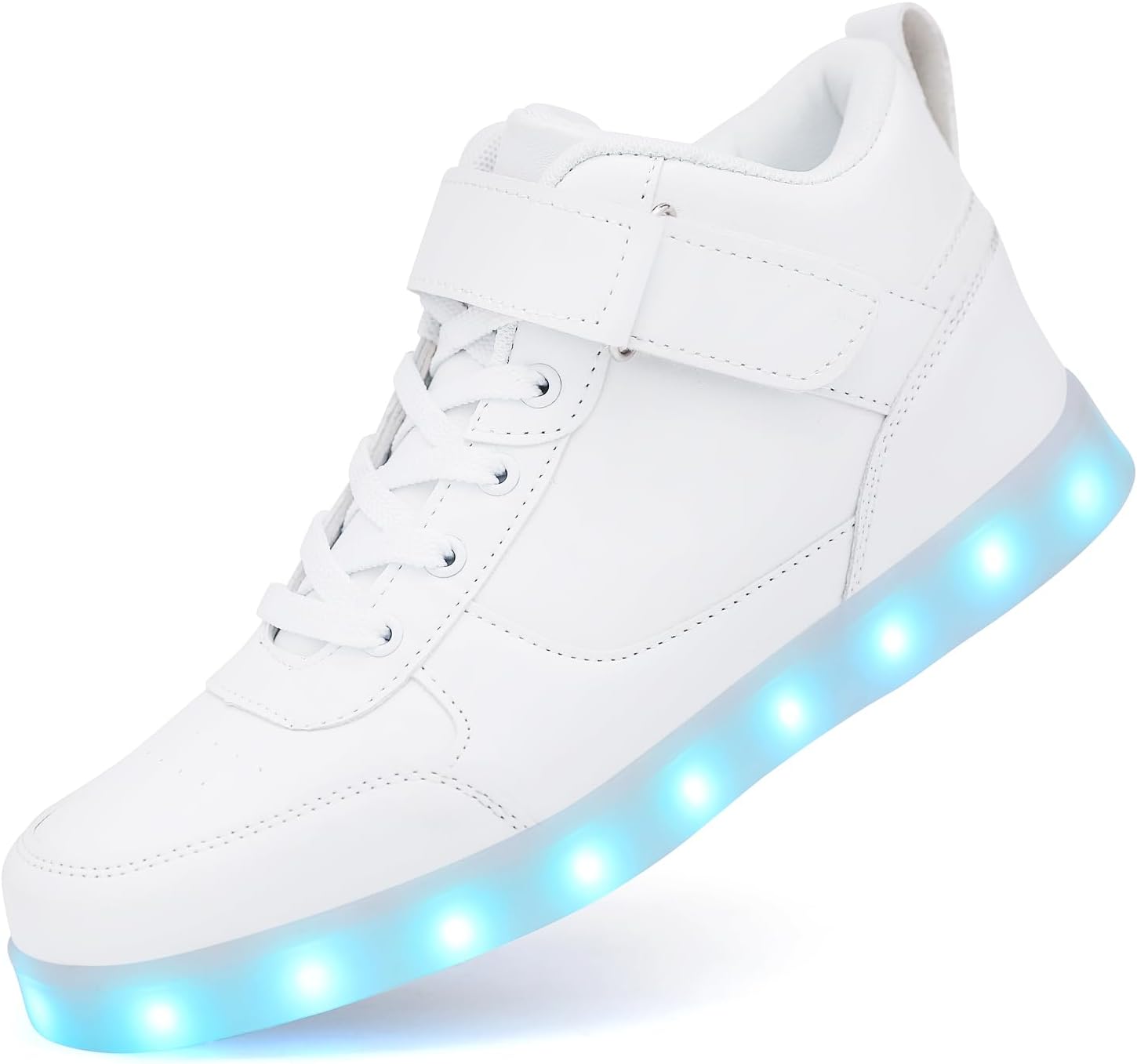 High top LED light up shoes is made of top grade PU leather and non-slip thermoplastic rubber sole,Lined with cotton fabric for excellent