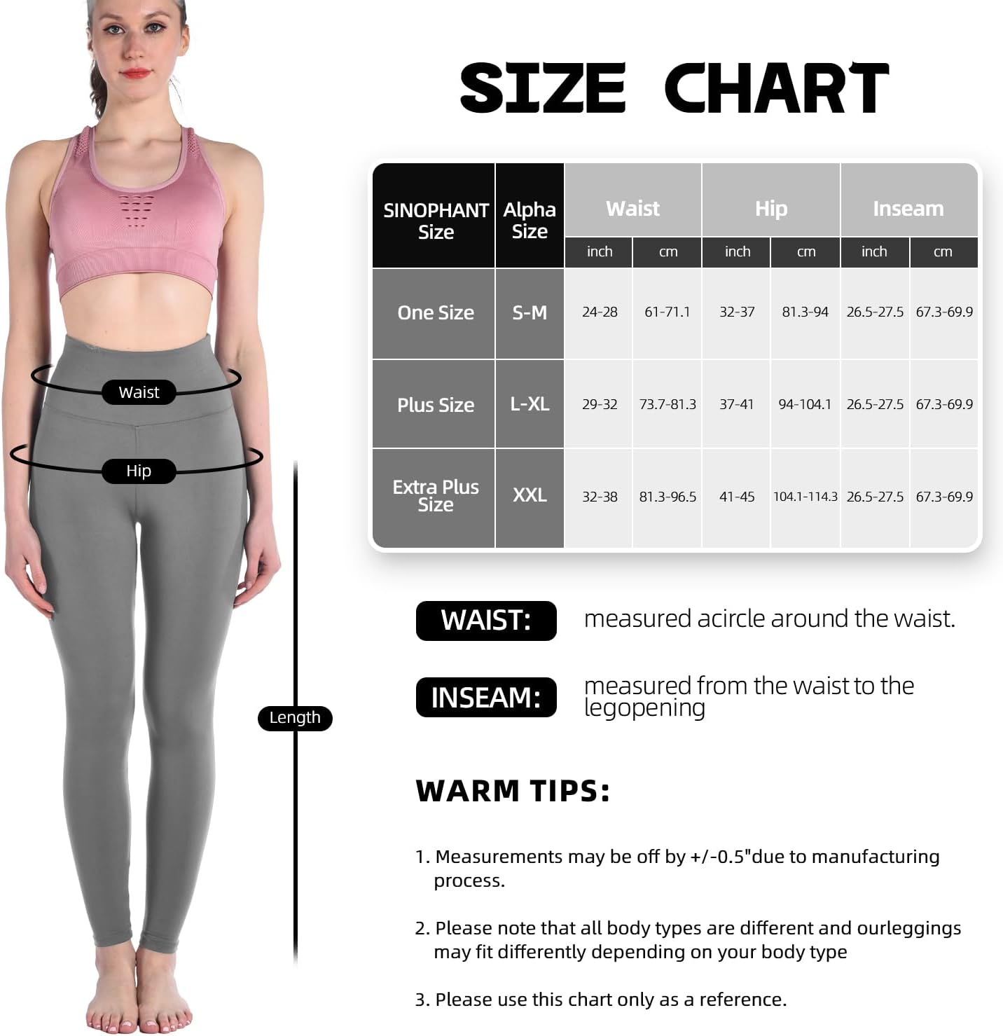 ( One Size = Small-Medium, Plus Size = Large-X-Large and Extra Plus Size = XX-Large ). The High Waisted Full Length Leggings are designed to be figure flattering and supportive for all sizes and body types.