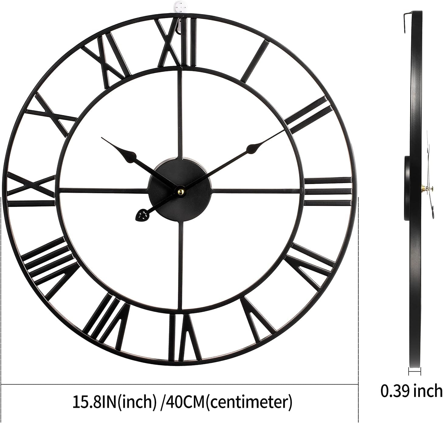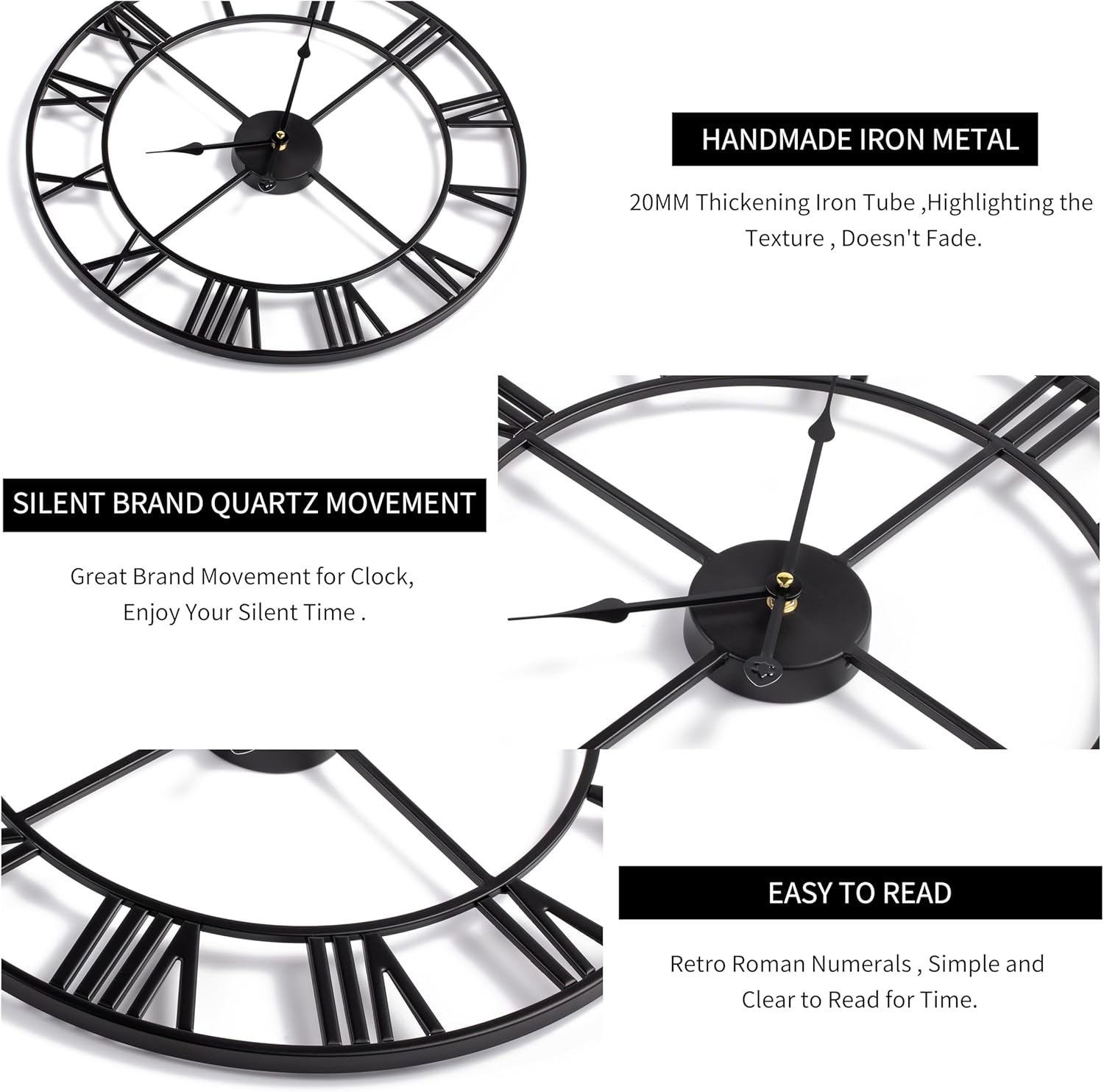 [Industrial Clock] The large metal clock has a hollowed-out retro design. The strength and retro appearance of the Roman wall clock are ensured by the use of high-quality materials in the handcrafted, solid iron frame.