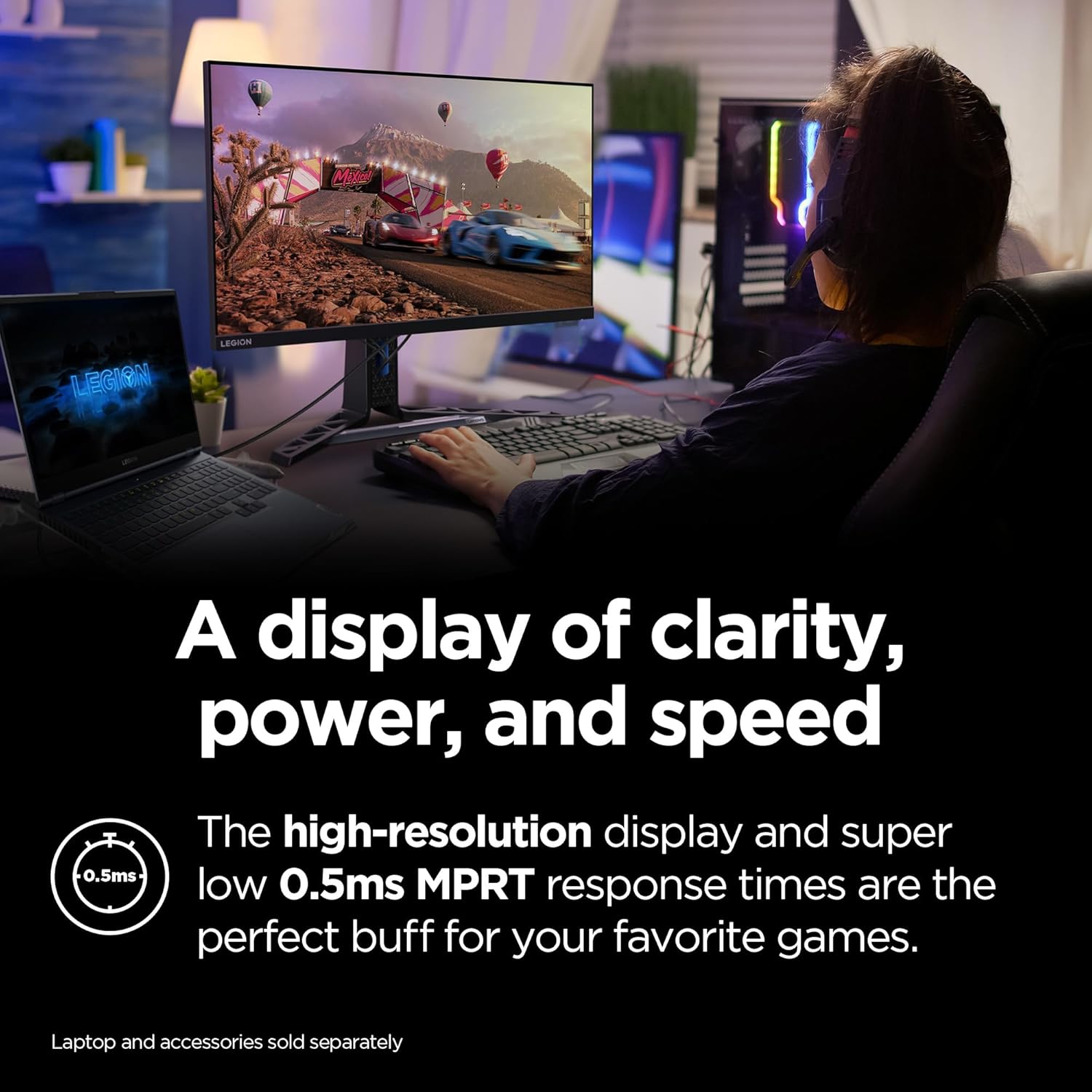 The Legion Y27h-30 monitor is designed for the creators and gamers who need high-end visual features to excel in their work and play. The 27” QHD display is crafted with a NearEdgeless frame for an immersive viewing experience. It supports 126% sRGB color area ratio, 95% DCI-P3 color gamut, Avg. Delta E<2, and DisplayHDR™ 400 to reproduces strikingly life-like imagery with insane color accuracy and depth. Motion-blur and ghosting are a thing of the past with an extreme 180Hz overclocked refresh rate and super low 0.5ms MPRT response time. The monitor comes preloaded with AMD FreeSync™ Premium for smoother, fluid gameplay without screen tearing or stuttering. The Legion Y27h-30 is designed for the busy multitasker and comes with with a USB Type-C port that allows you to display, connect, and charge your PC, phone or other devices. Enjoy prolonged gaming sessions in comfort with the ergonomic stand and built in Natural Low Blue Light technology that protects your eyes while retaining color fidelity. When you’re off the clock and ready to beat a new high score, Lenovo Artery software delivers built-in gaming tools and smart features to help you succeed. The Legion Y27h-30 monitor brings clarity, power, and speed to all of your creative endeavors.