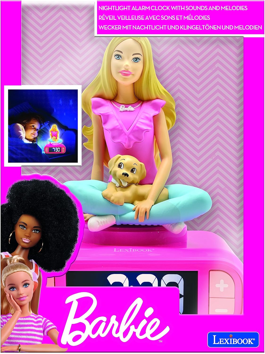 LEXIBOOK, Barbie, Nightlight Alarm Clock, Sounds and Melodies, LCD Backlit Screen, Luminous, Snooze, Pink, RL800BB