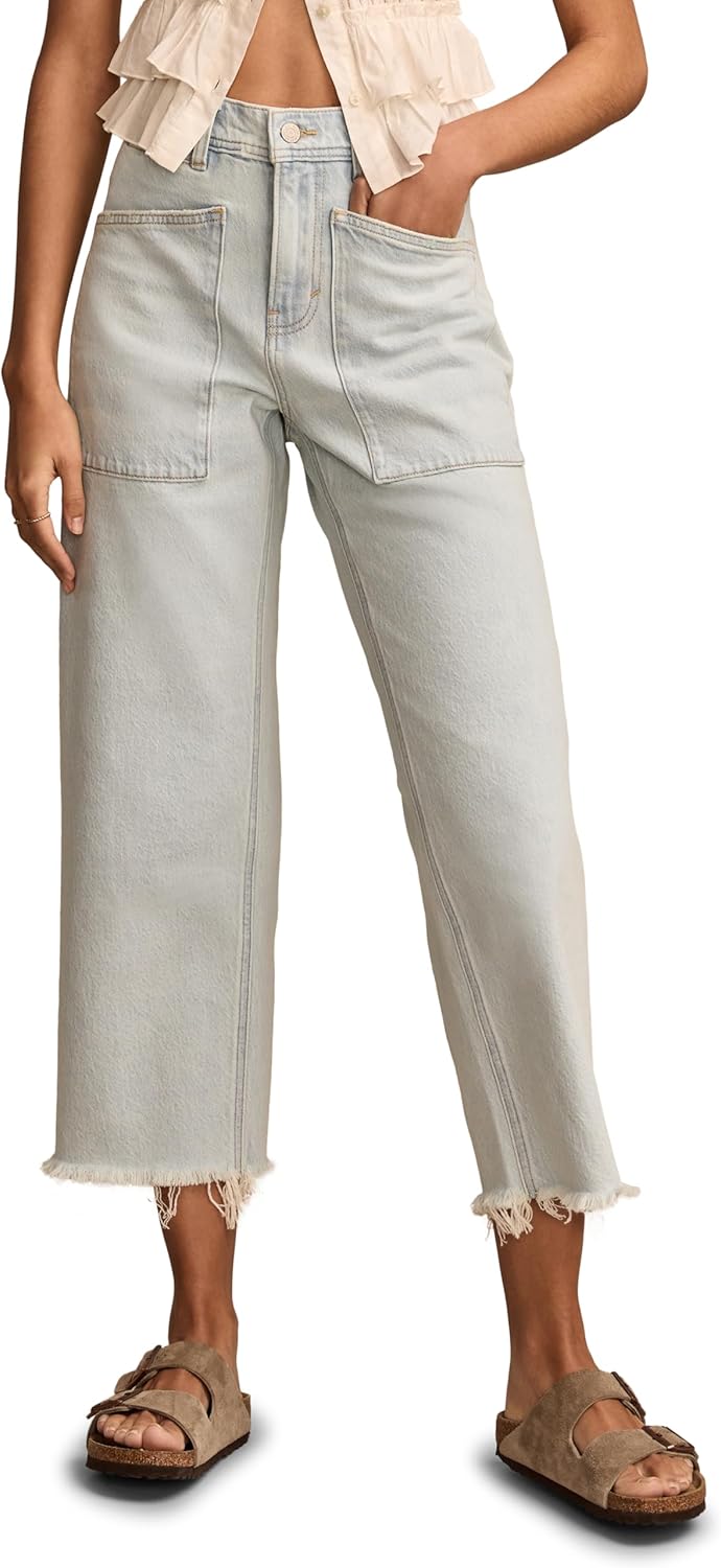 Inspired by authentic vintage-like styles, Lucky Brand’s Lucky Legend High Rise Wide Leg Crop jean is made to fit easy through the hips and thighs and finish with a cropped wide leg. From Lucky’s limited edition Lucky Legend collection, this pair has front patch pockets and a raw edge frayed hem.