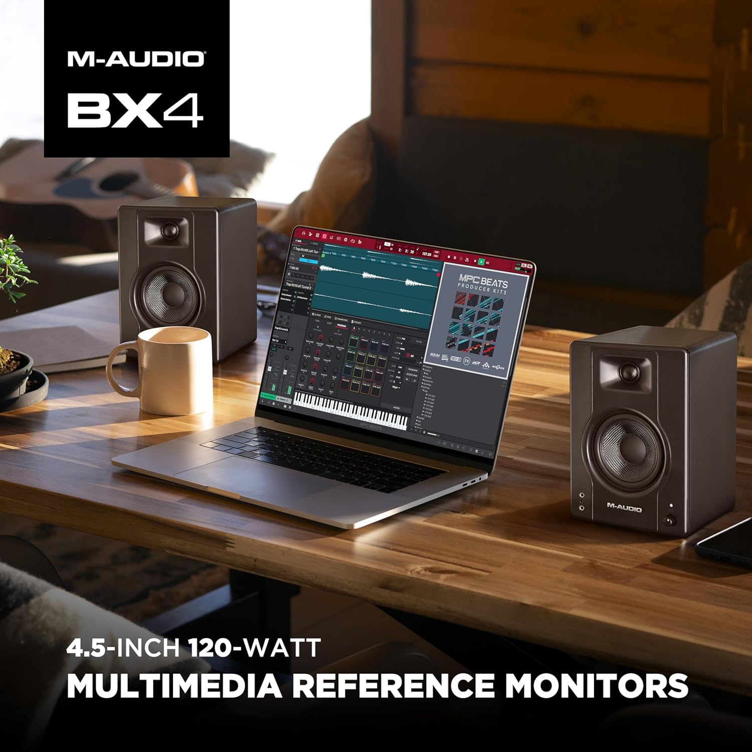 M-Audio BX4 4.5″ Studio Monitors, HD PC Speakers for Recording and Multimedia with Music Production Software, 120W, Pair, Black