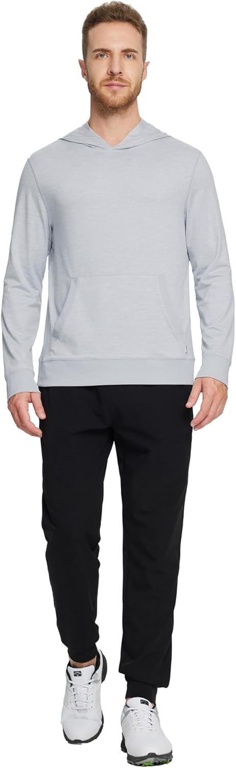 M MAELREG Mens Hoodies Pullover Performance Heather Kangaroo Pocket Thin Hooded Sweatshirt Athletic Golf Hoodies for Men