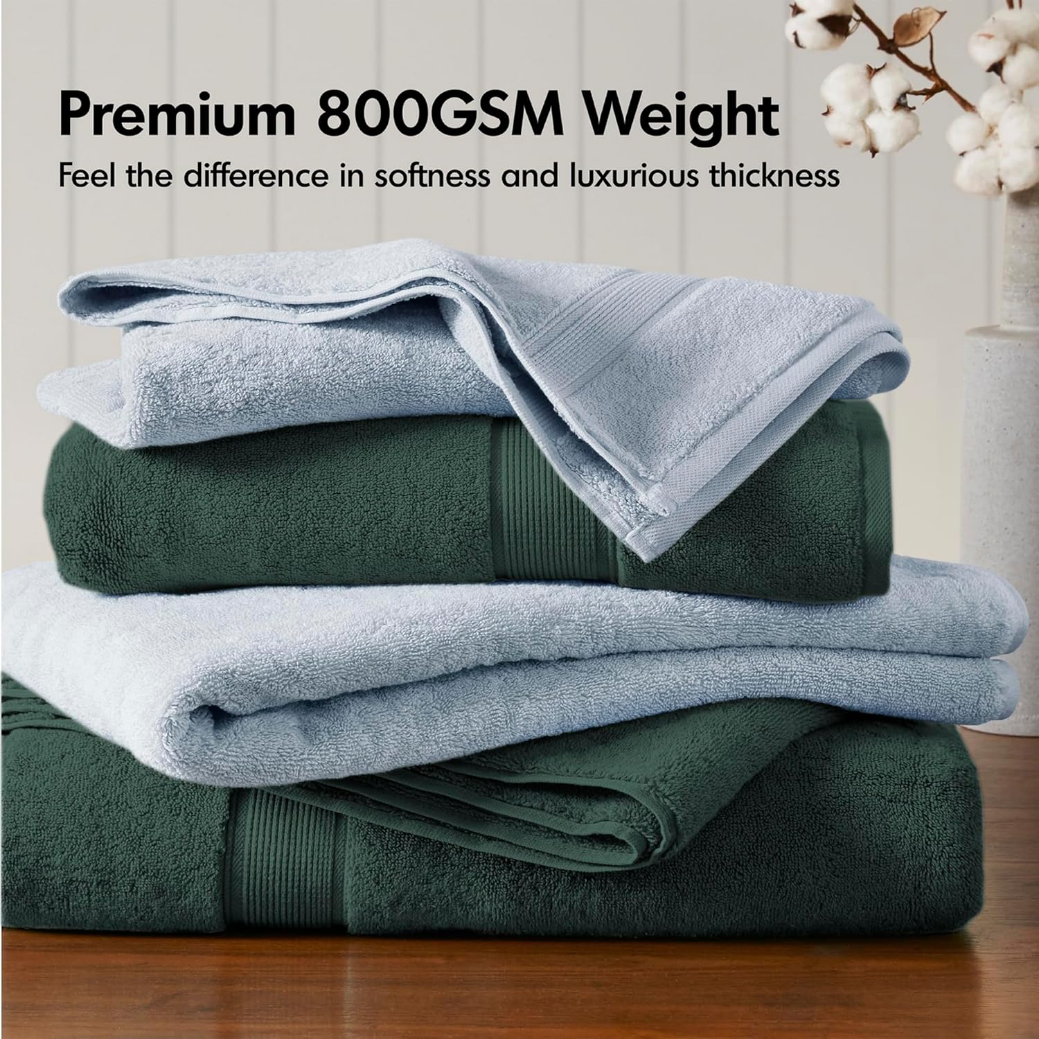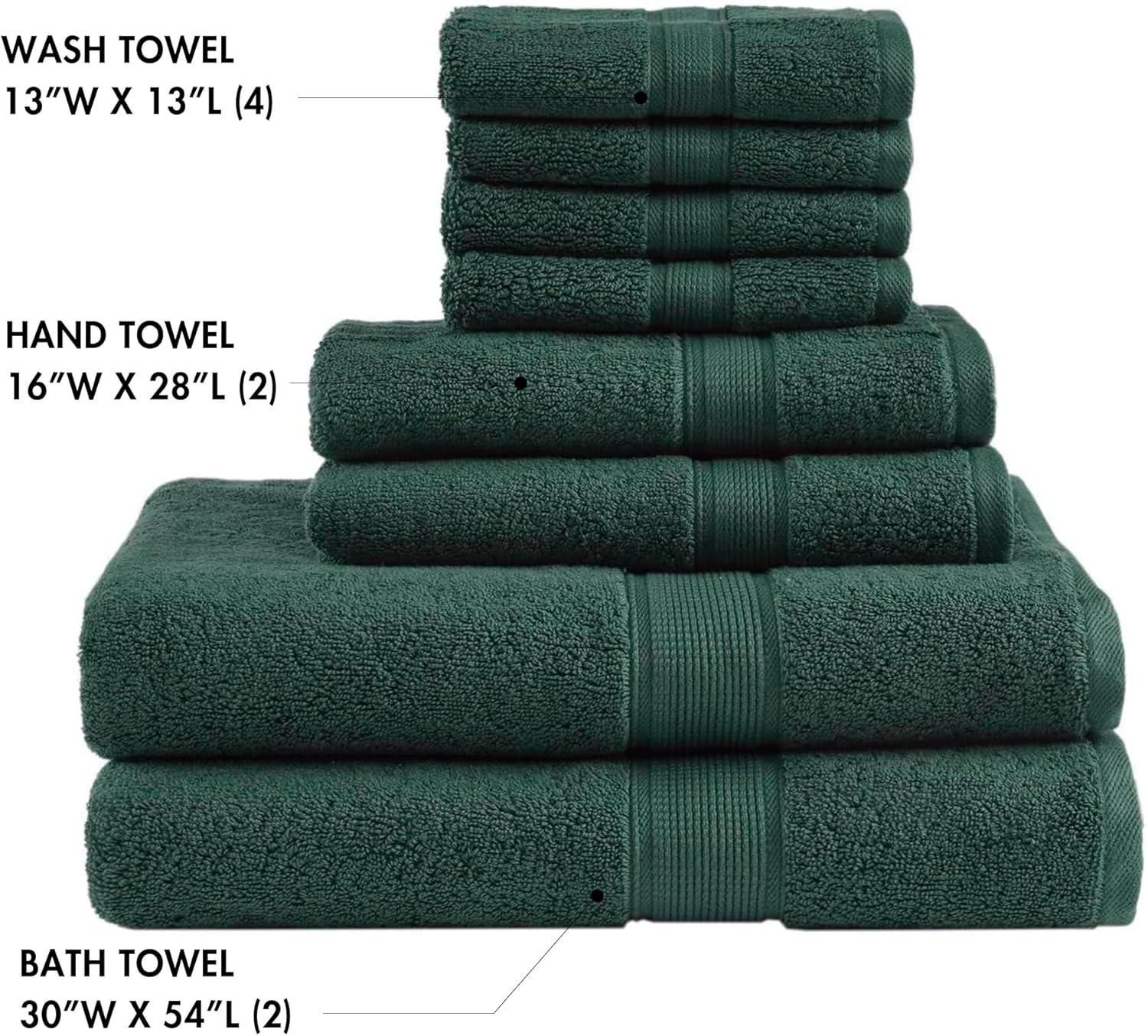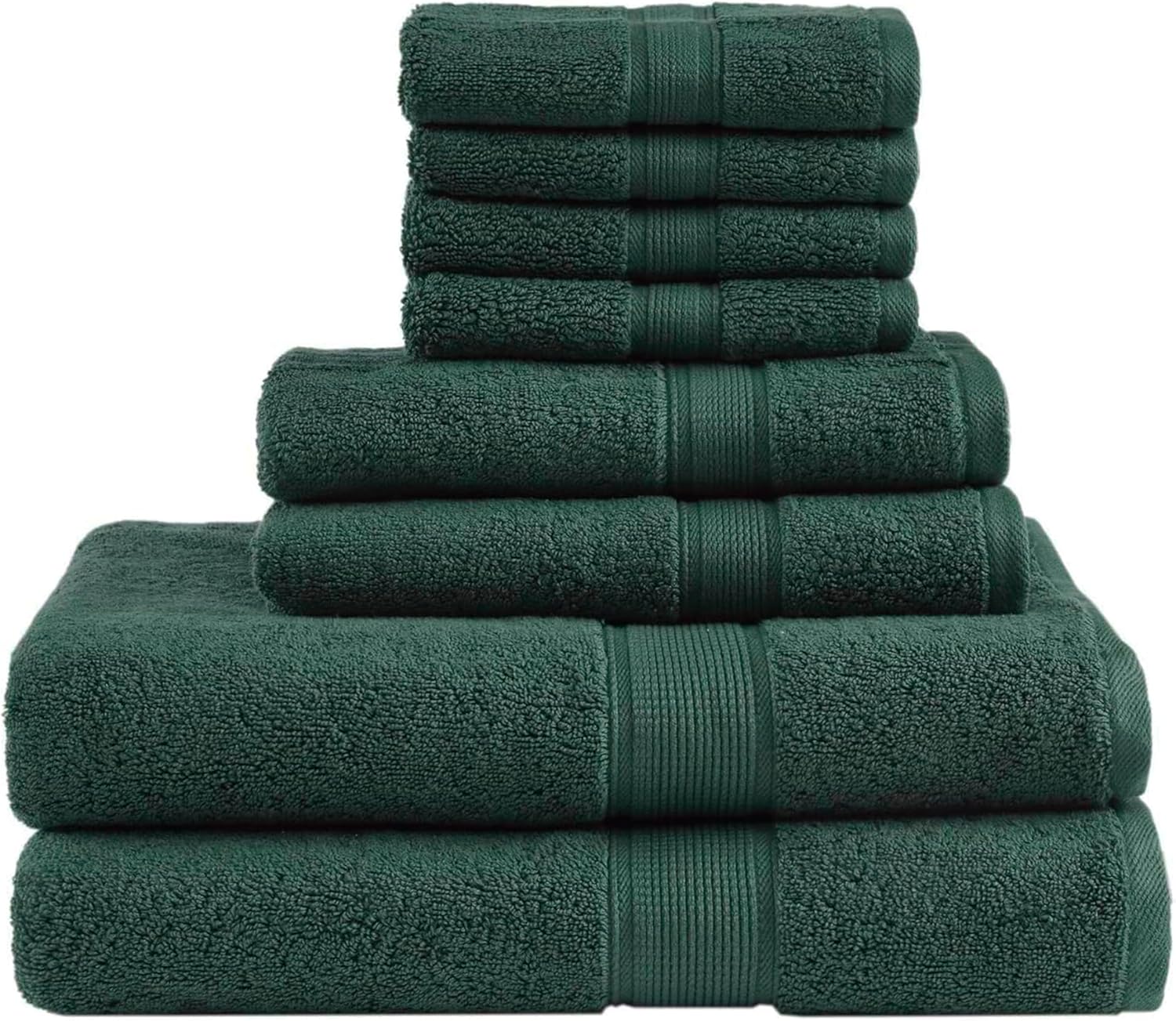 Madison Park 800GSM Bathroom Towel Set of 8 100% Cotton Bath Towel Set for Bathroom Luxurious Highly Absorbent 2 Bath Towels 2 Hand Towels 4 Washcloths Quick Dry Spa Quality Dark Green
